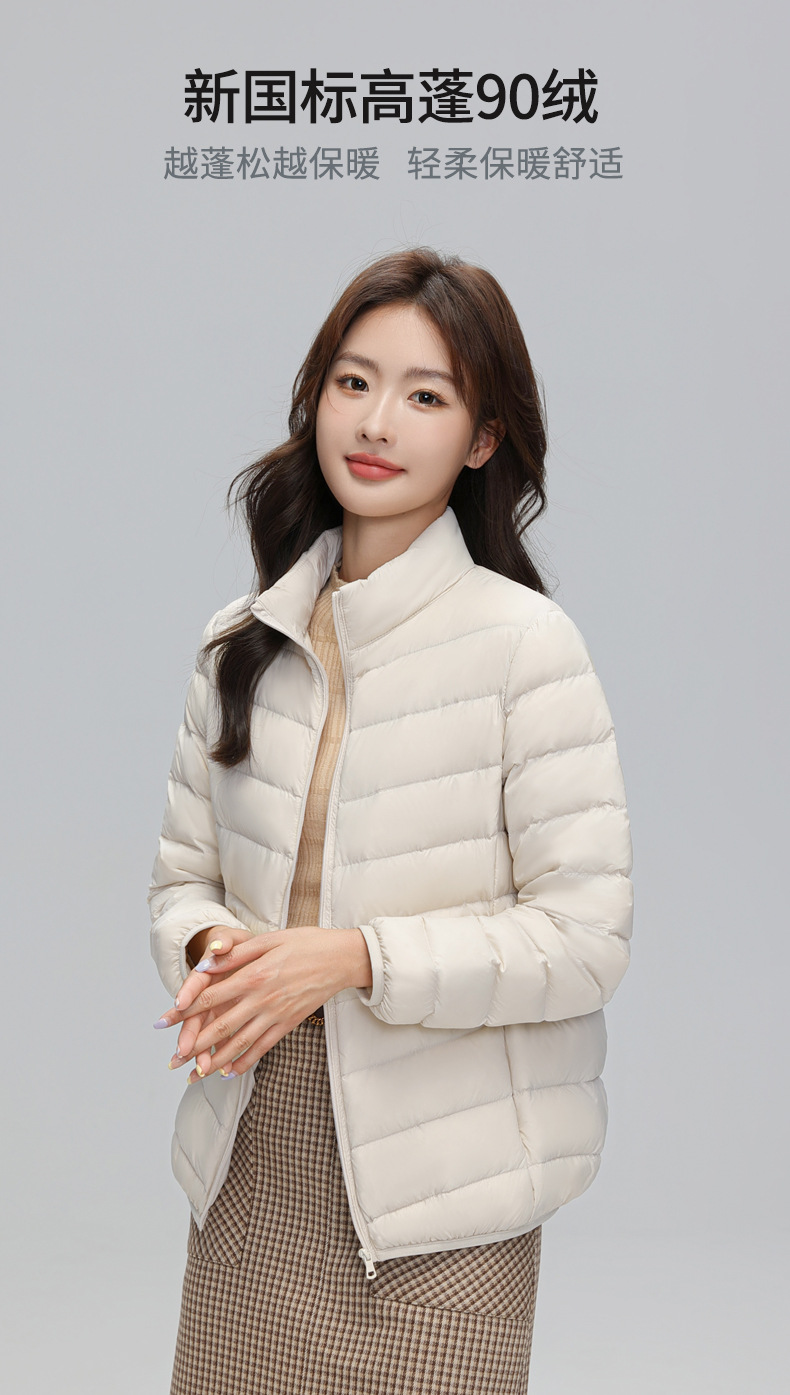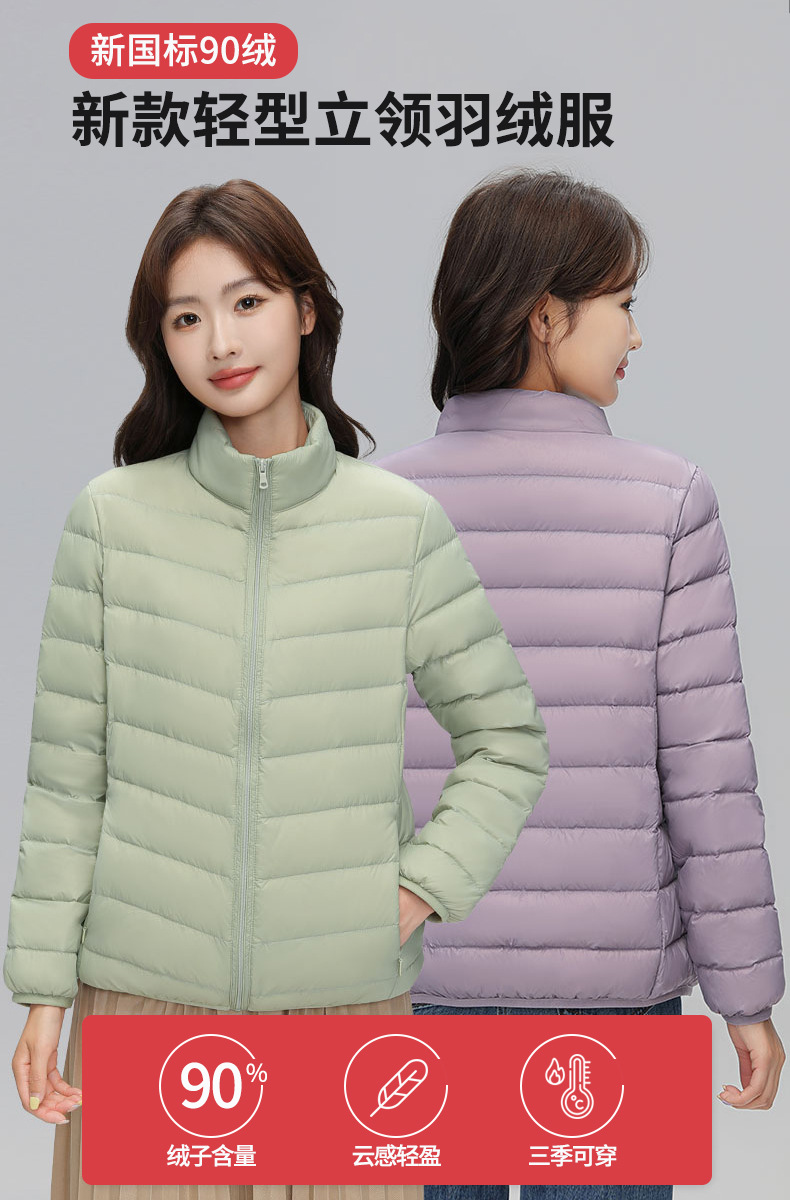 绒子含量90%白鸭绒的新国标立领轻薄羽绒服