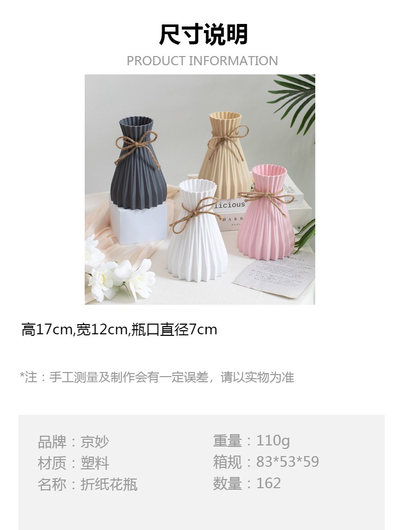 간단한 스타일의 플라스틱 종이 접기 꽃병 홈 장식 말린 꽃 꽃꽂이 장식품 시뮬레이션 꽃 용기 국경 간 배송스토어 가기