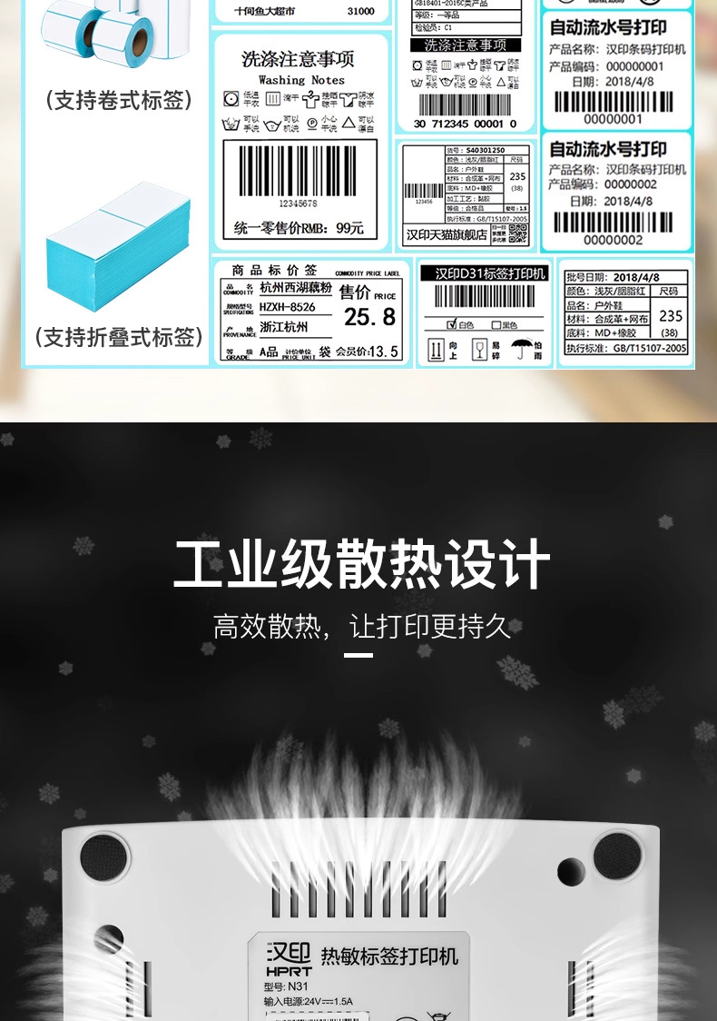 한 Yin N31 단일 범용 휴대용 익스프레스 인쇄 단일 전자 얼굴 단일 열 라벨 소형 프린터스토어 가기