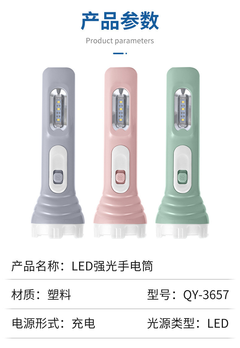 乔裕强光手电筒QY-3657续航时间长高亮度带侧灯户外露营徒步LED手电筒