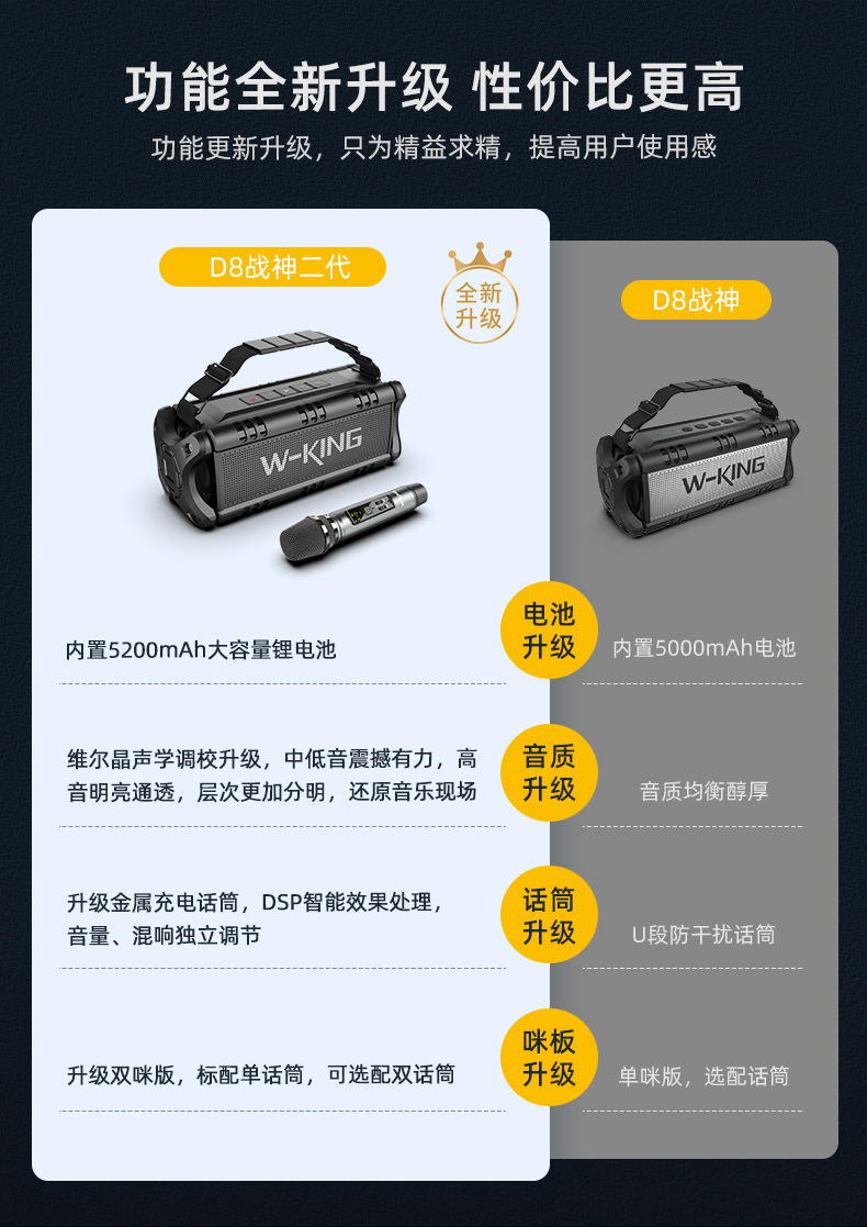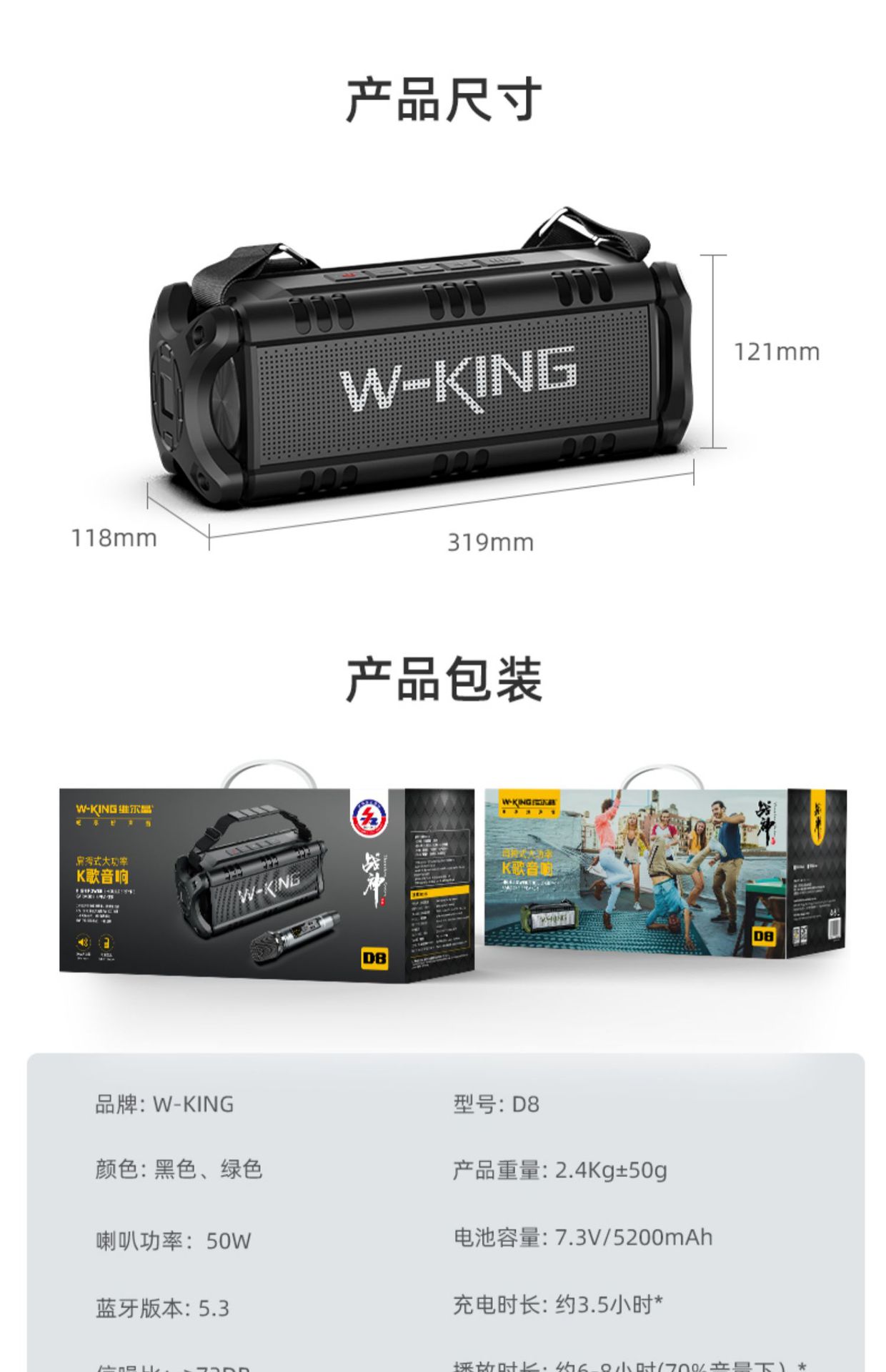 Weierjing D8 메신저 휴대용 서브 우퍼 홈 KTV 시네마 야외 등산 캠핑 자동차 블루투스 스피커