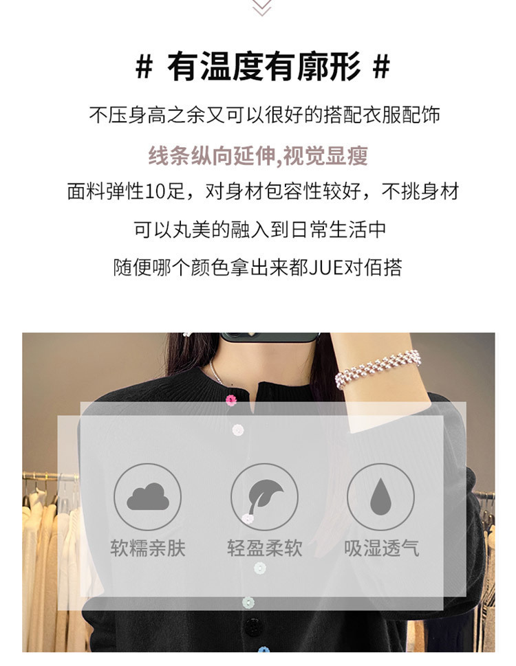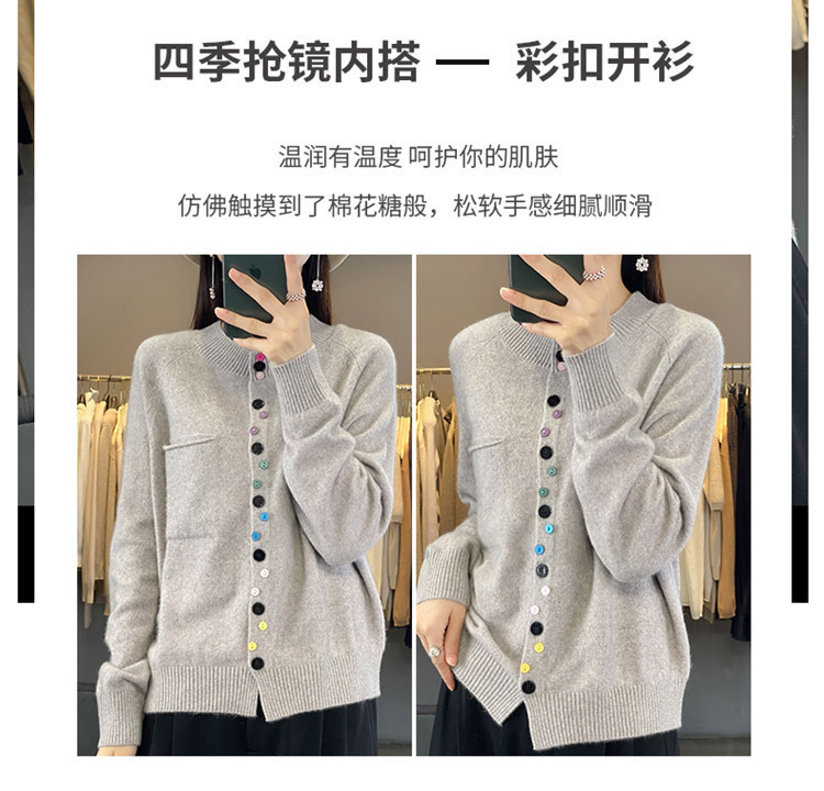 欧货早秋新款彩扣圆领针织衫女时尚宽松套头毛衣洋气开衫内搭