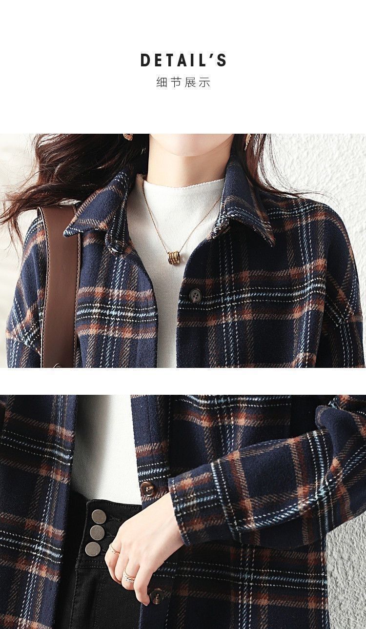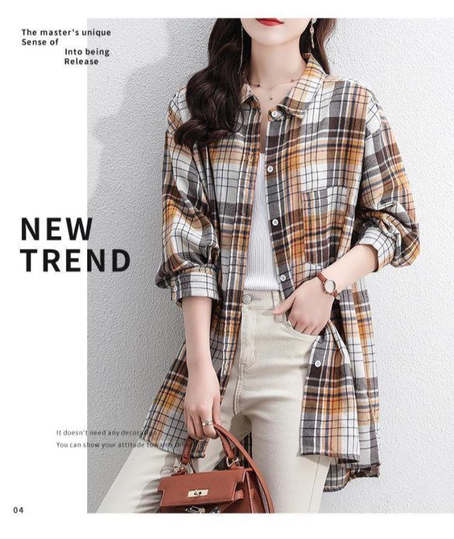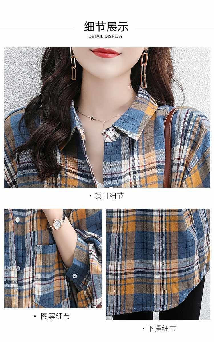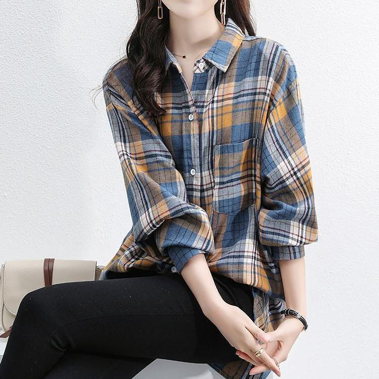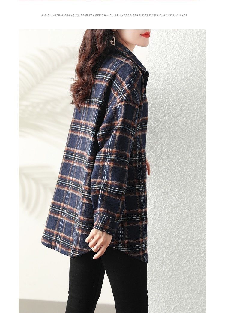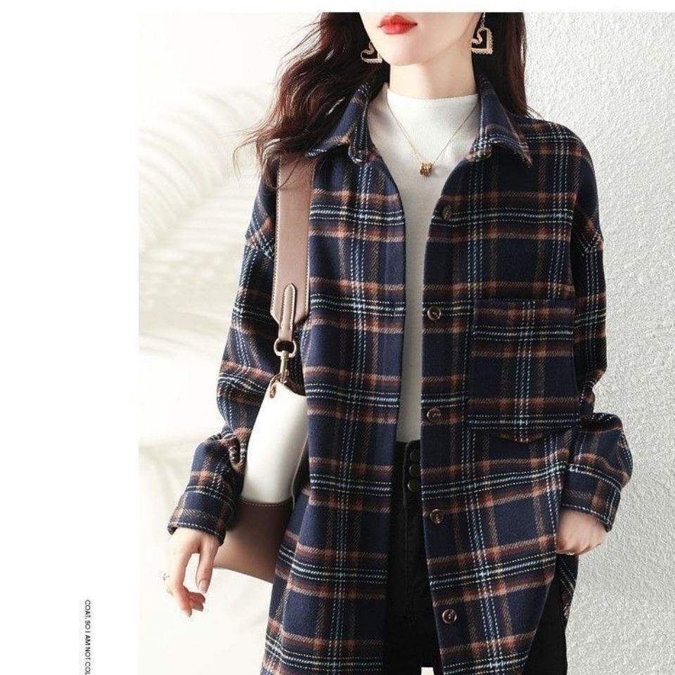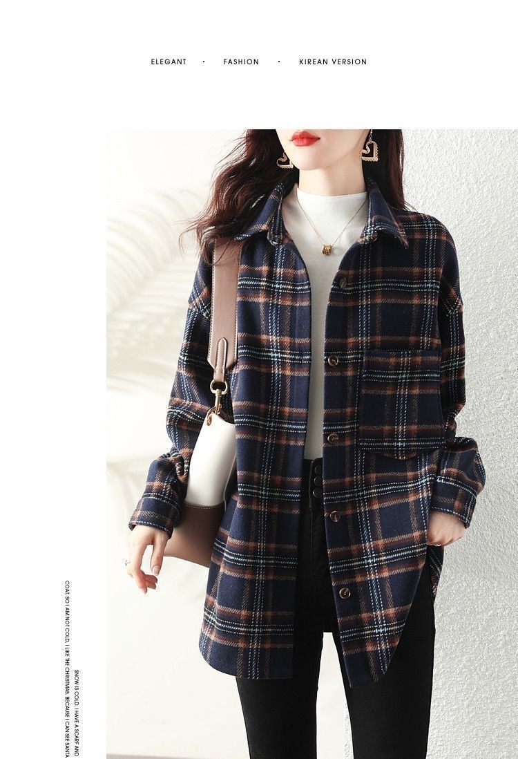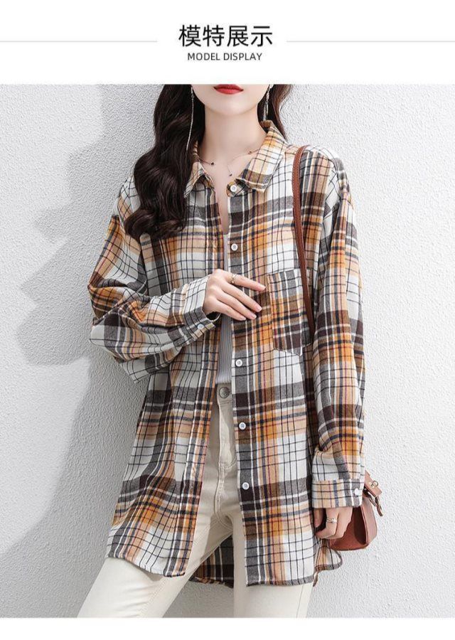 브러시 격자 무늬 셔츠 여성용 긴팔 한국식 루즈한 패셔너블한 올 매치 레트로 탑 중간 길이 봄과 가을 스택 재킷스토어 가기