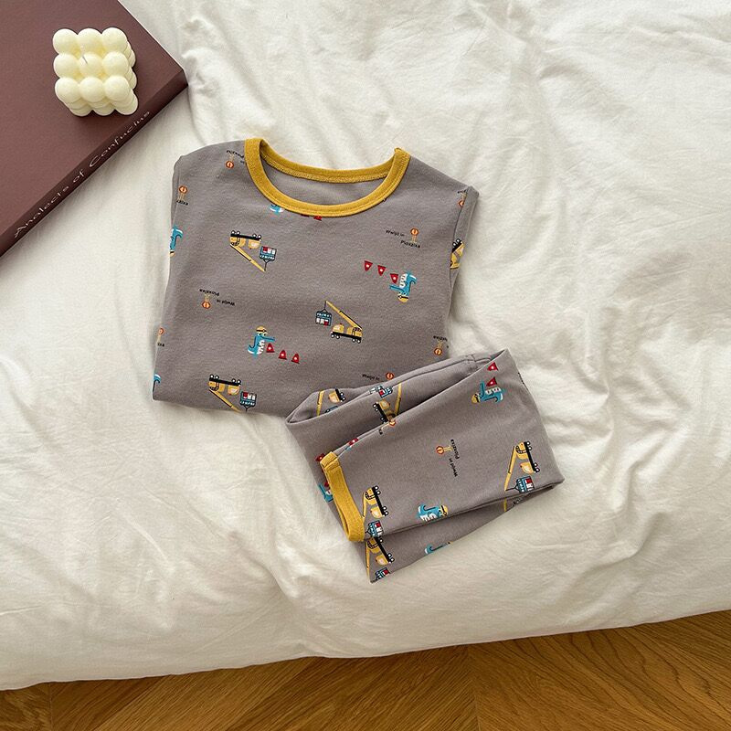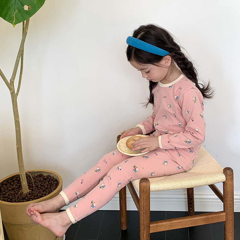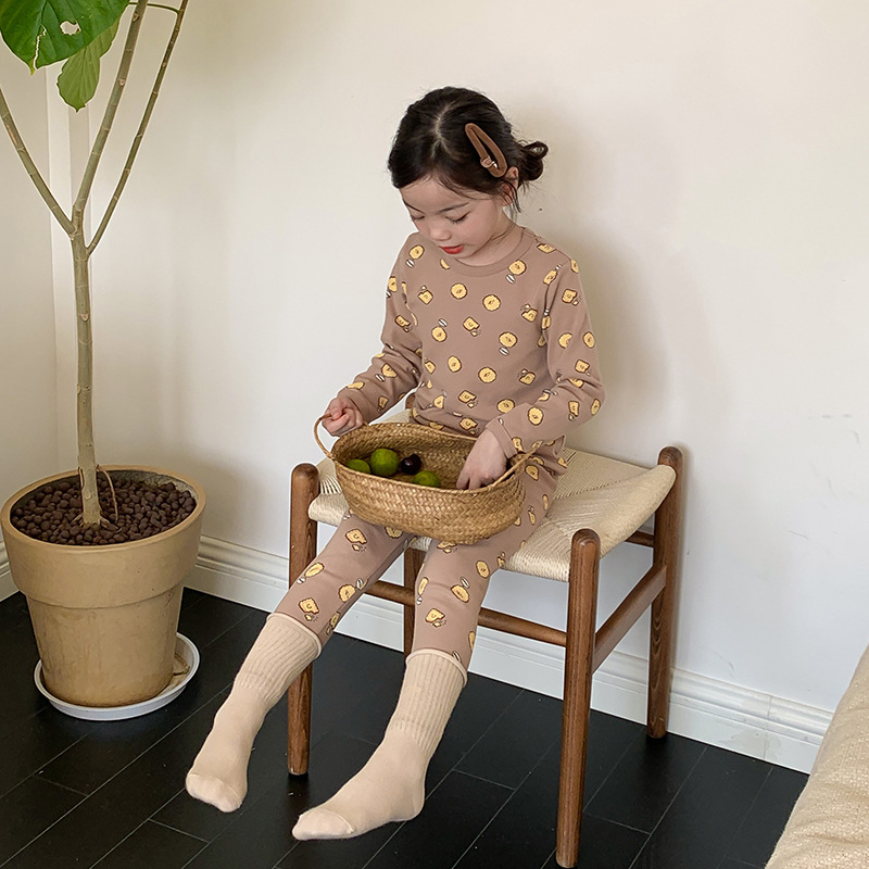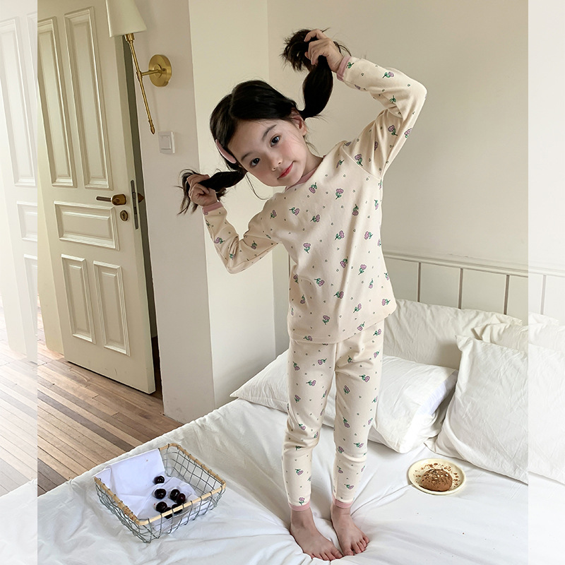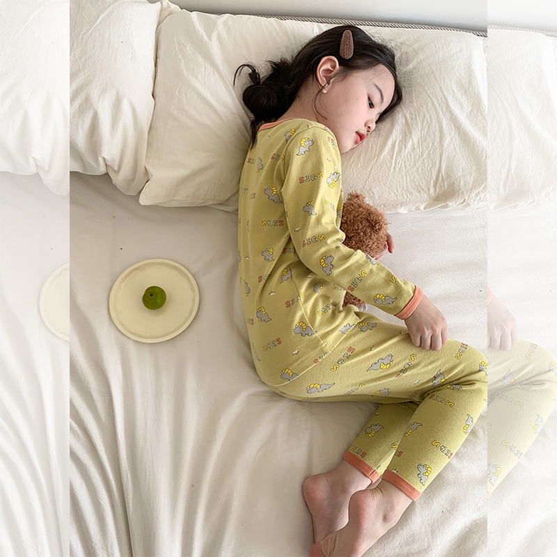소년과 소녀를위한 어린이 잠옷 가을 새로운 클래스 만화 속옷 세트 아기 270g 울 풀 랙 가정 옷스토어 가기