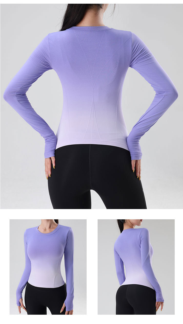 새로운 크로스 보더 요가 그라디언트 속건 스포츠 피트니스 긴팔 티셔츠 여성용 슬림핏 탑 타이트베이스 얇은 셔츠
