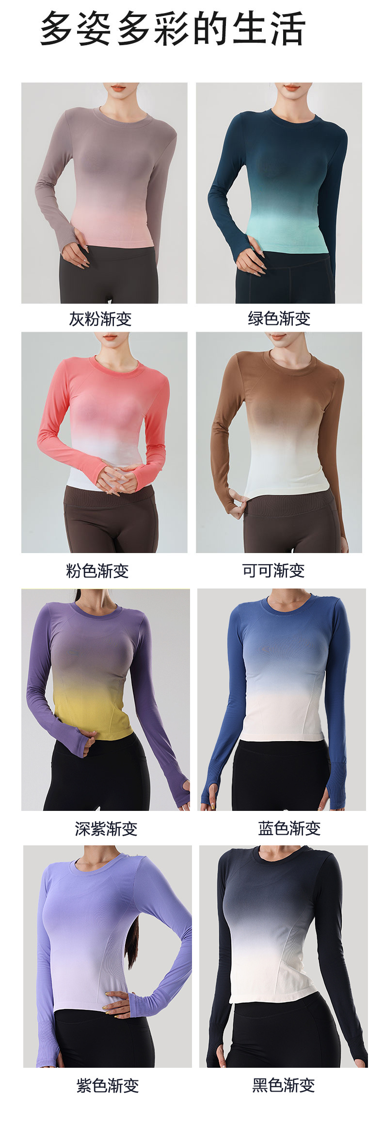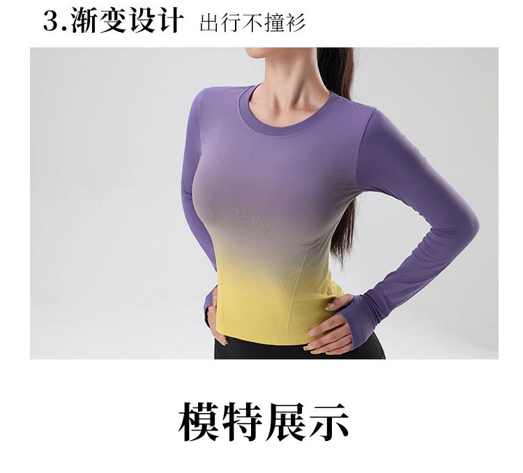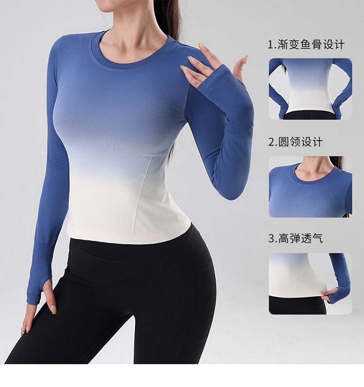 새로운 크로스 보더 요가 그라디언트 속건 스포츠 피트니스 긴팔 티셔츠 여성용 슬림핏 탑 타이트베이스 얇은 셔츠스토어 가기