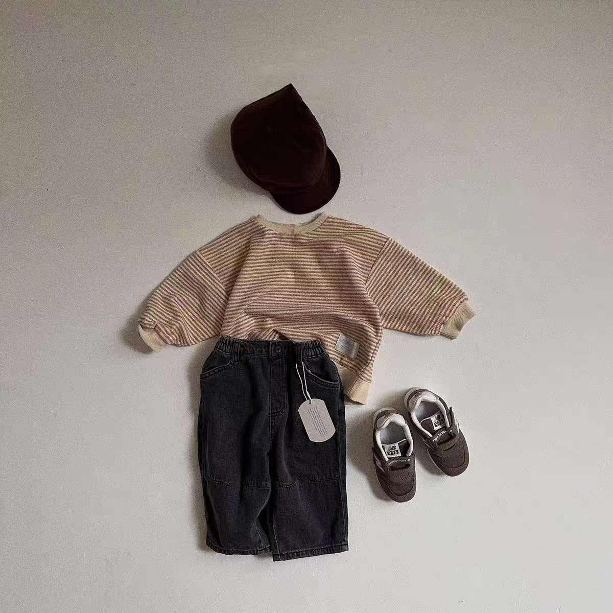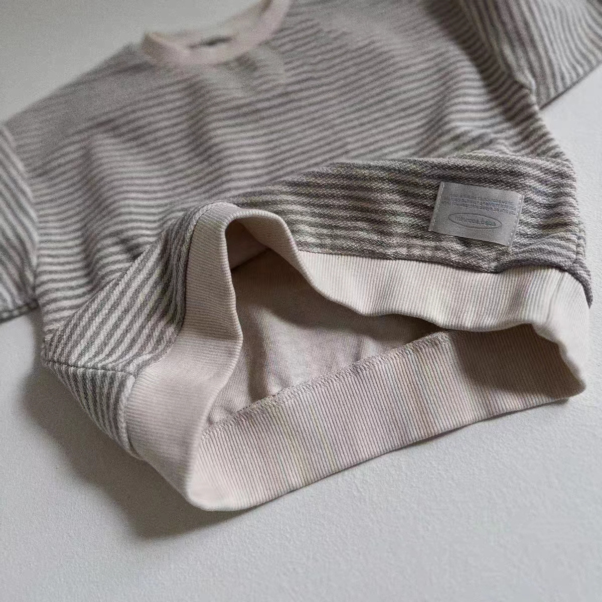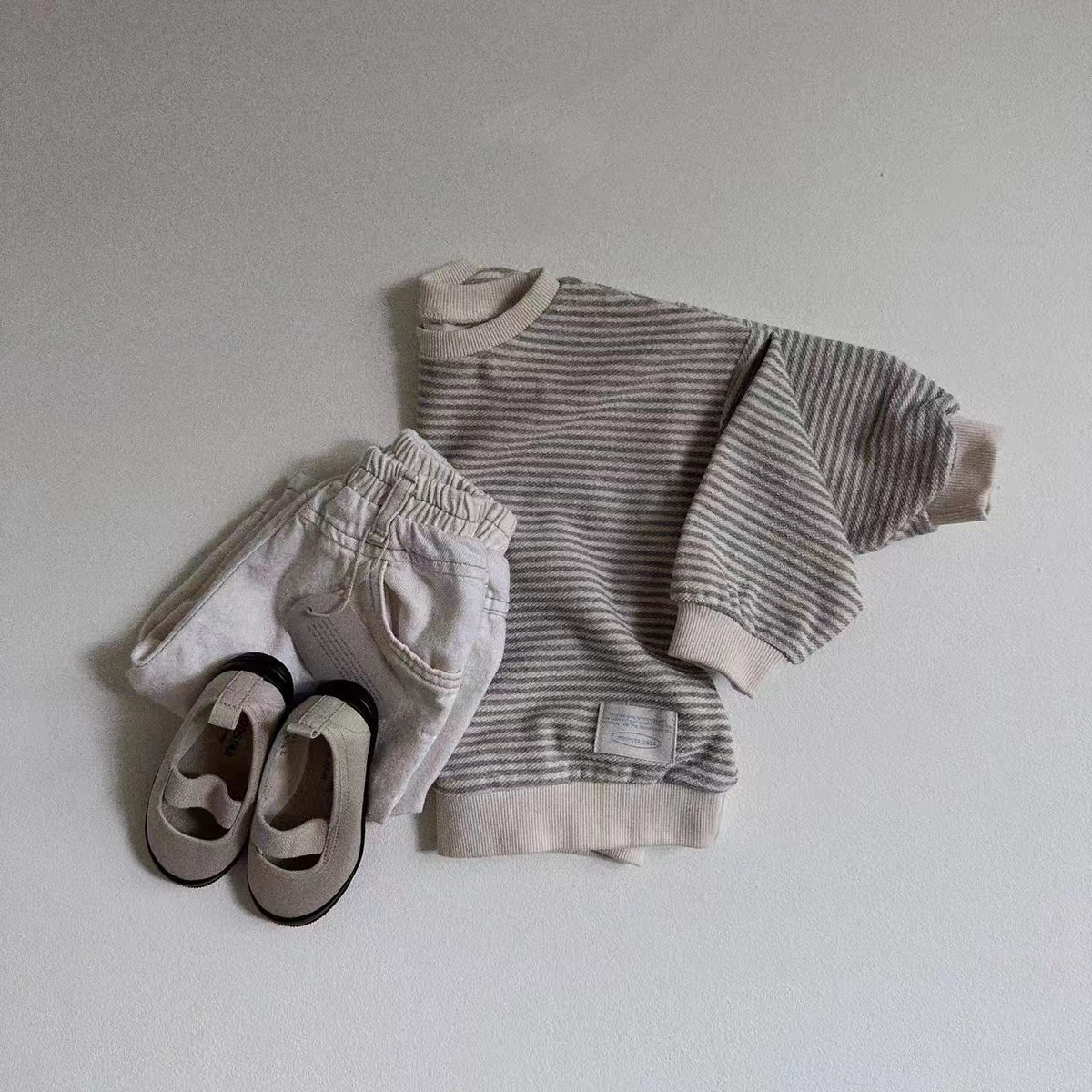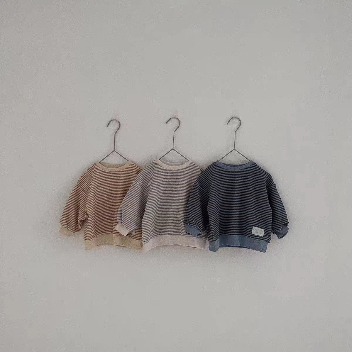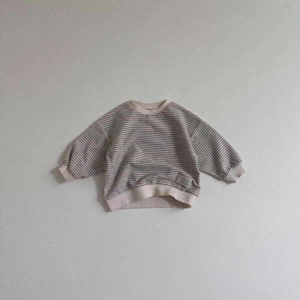 한국식 인 스트라이프 리브 스웨트셔츠 3 색 심플 올 매치 트렌디한 봄과 가을 소년 소녀를 위한 긴팔 캐주얼 탑스토어 가기
