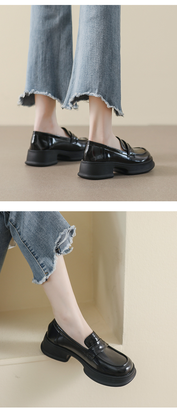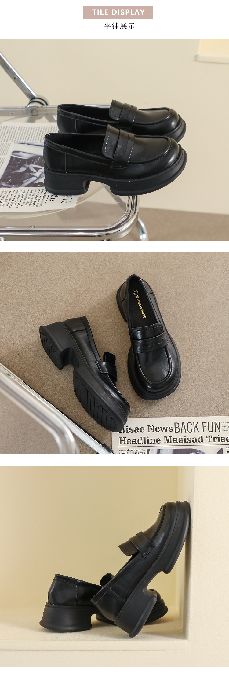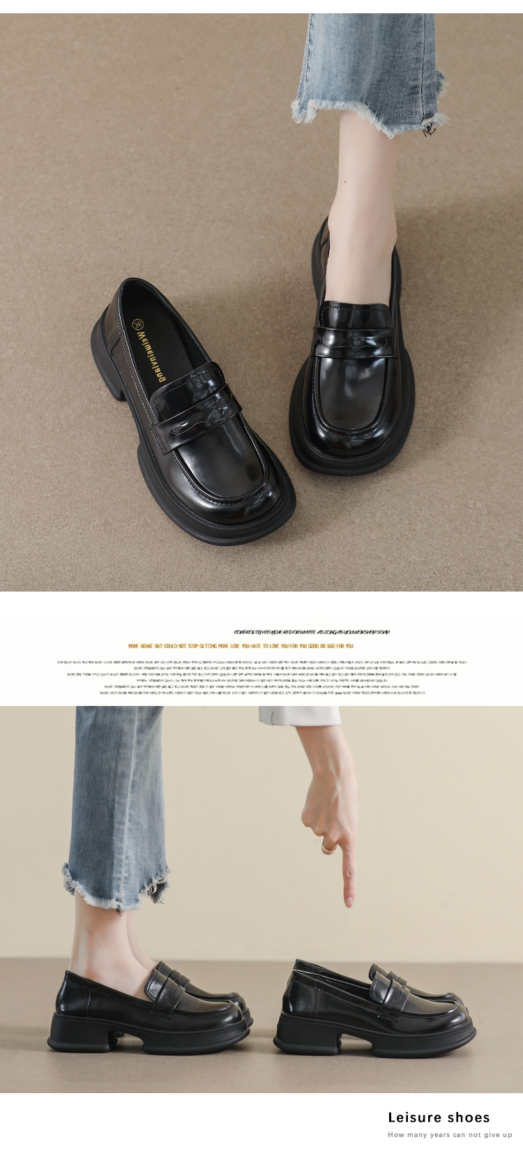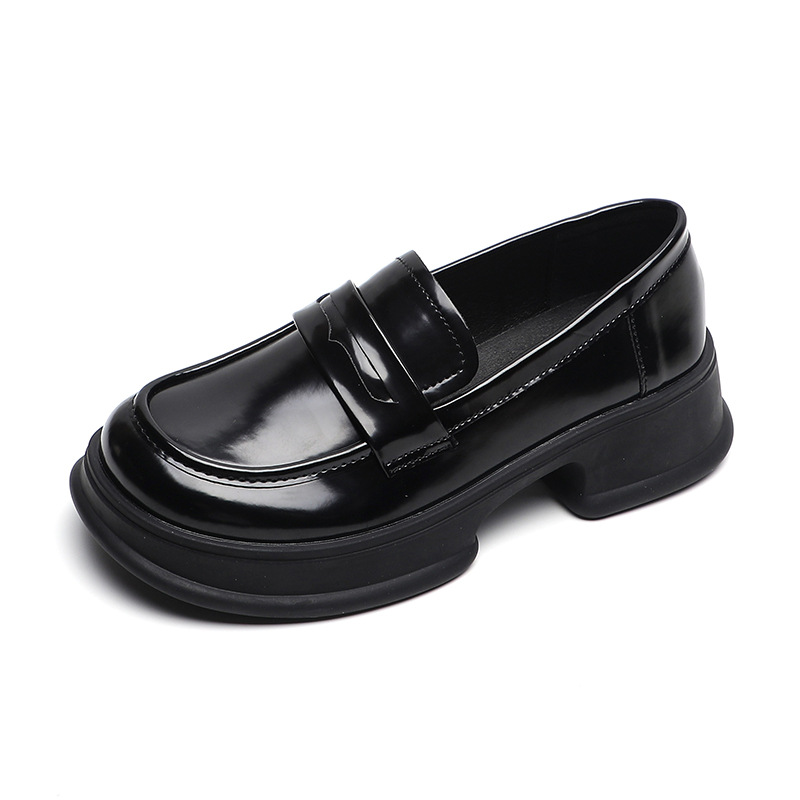 Weiwei 소녀 158-1 블랙 로퍼 여성의 부드러운 바닥 가을 라운드 머리 두꺼운 바닥 영국 작은 가죽 신발 플러스 사이즈 여성 신발
