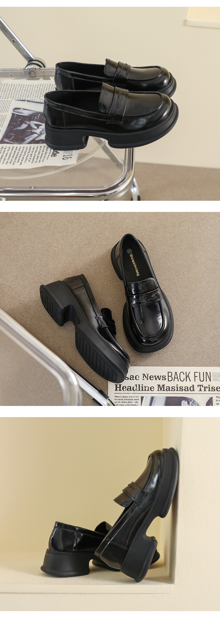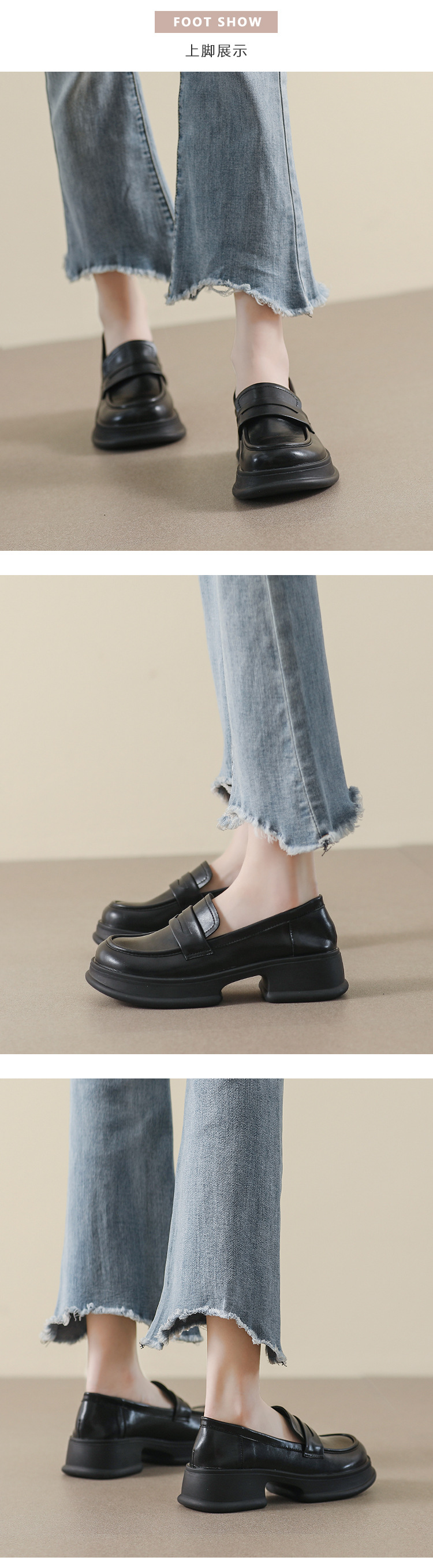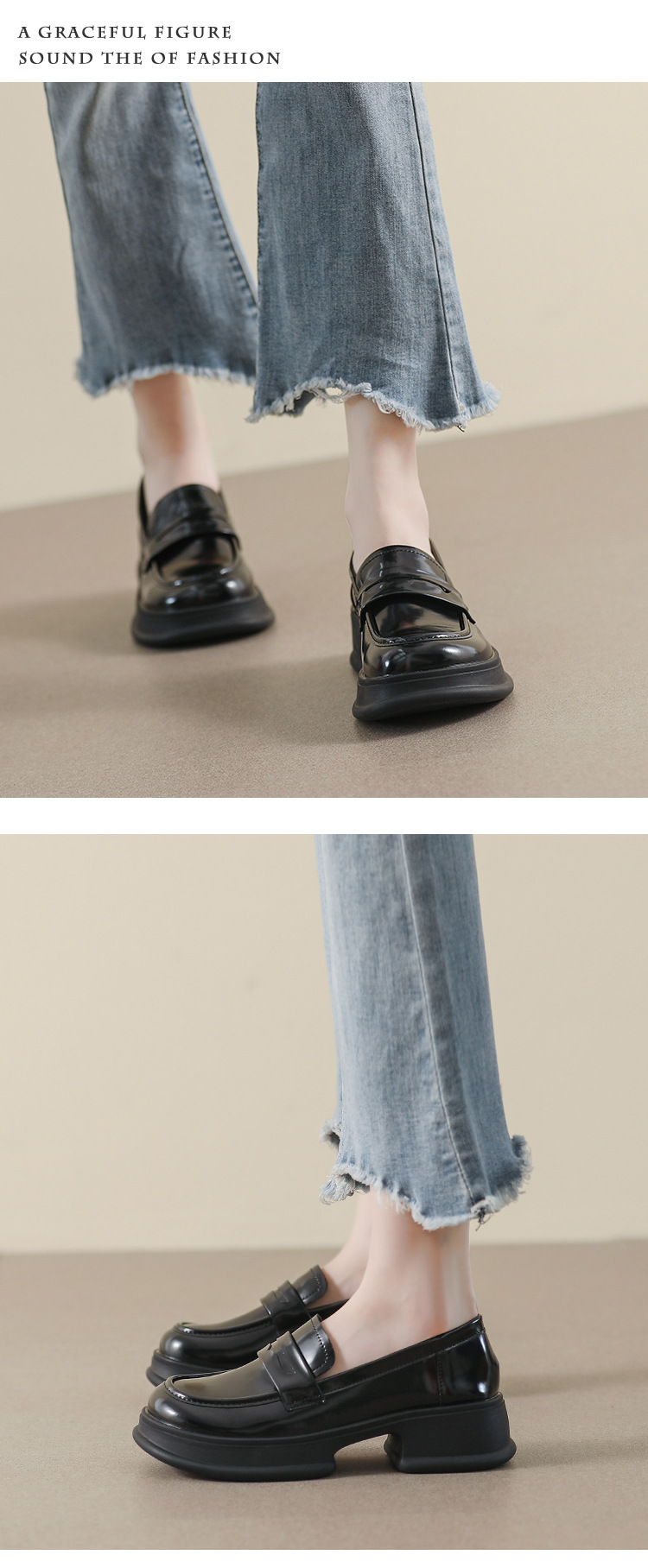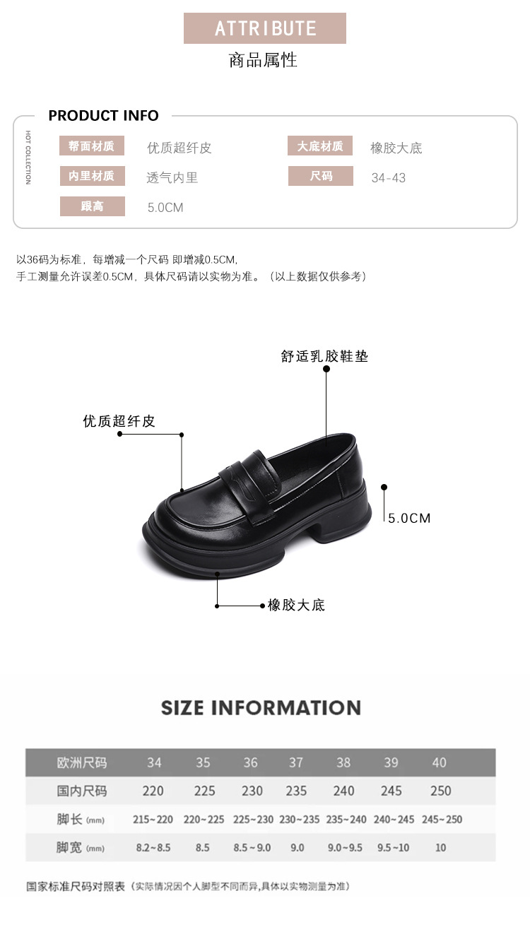 Weiwei 소녀 158-1 블랙 로퍼 여성의 부드러운 바닥 가을 라운드 머리 두꺼운 바닥 영국 작은 가죽 신발 플러스 사이즈 여성 신발