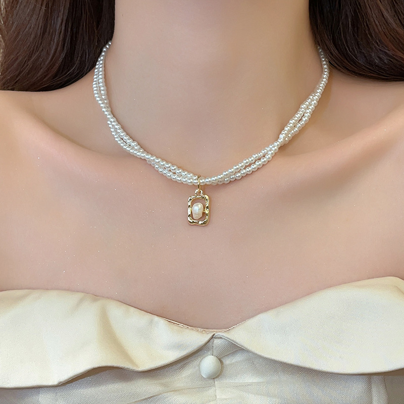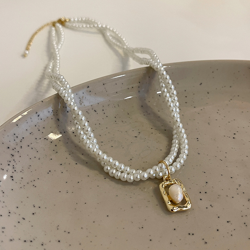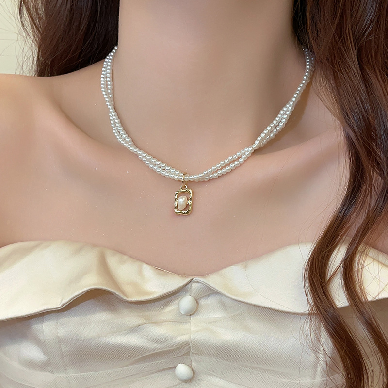 고급 감각 더블 레이어 스택 진주 목걸이 펜던트 틈새 디자인 엔트리 럭셔리 우아한 목걸이 새로운 패션 쇄골 체인스토어 가기