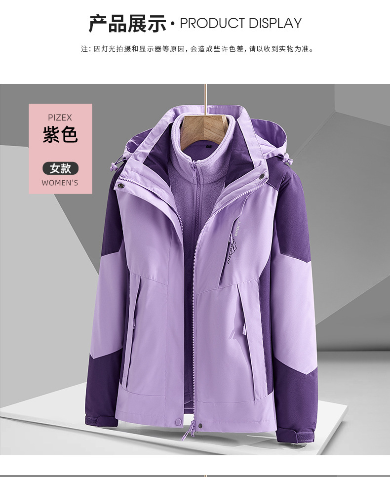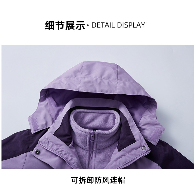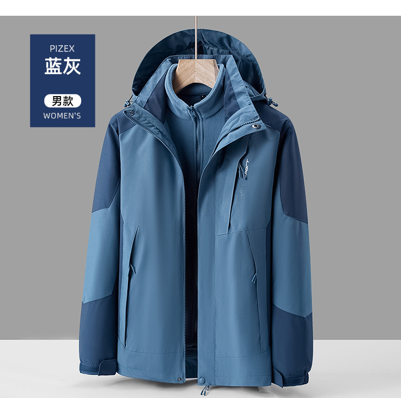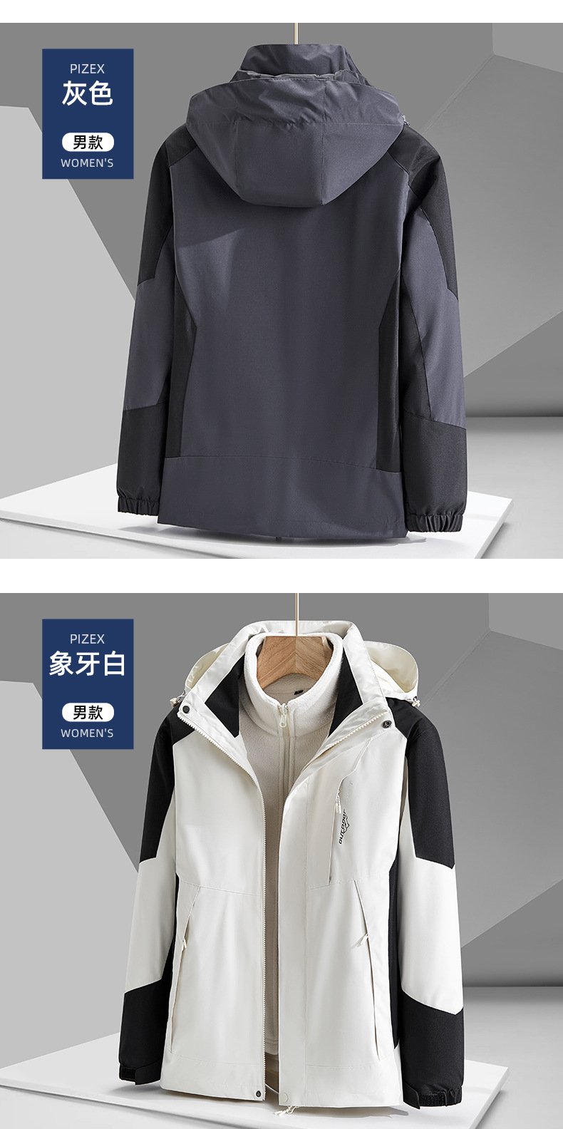 야외 커플 재킷 남성 및 여성 기모 3-in-One 분리형 투피스 방한 세트 등산 세트 인쇄 가능한 로고