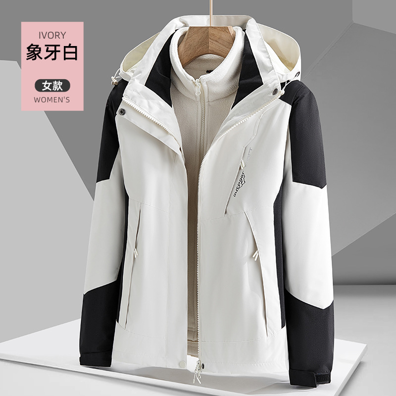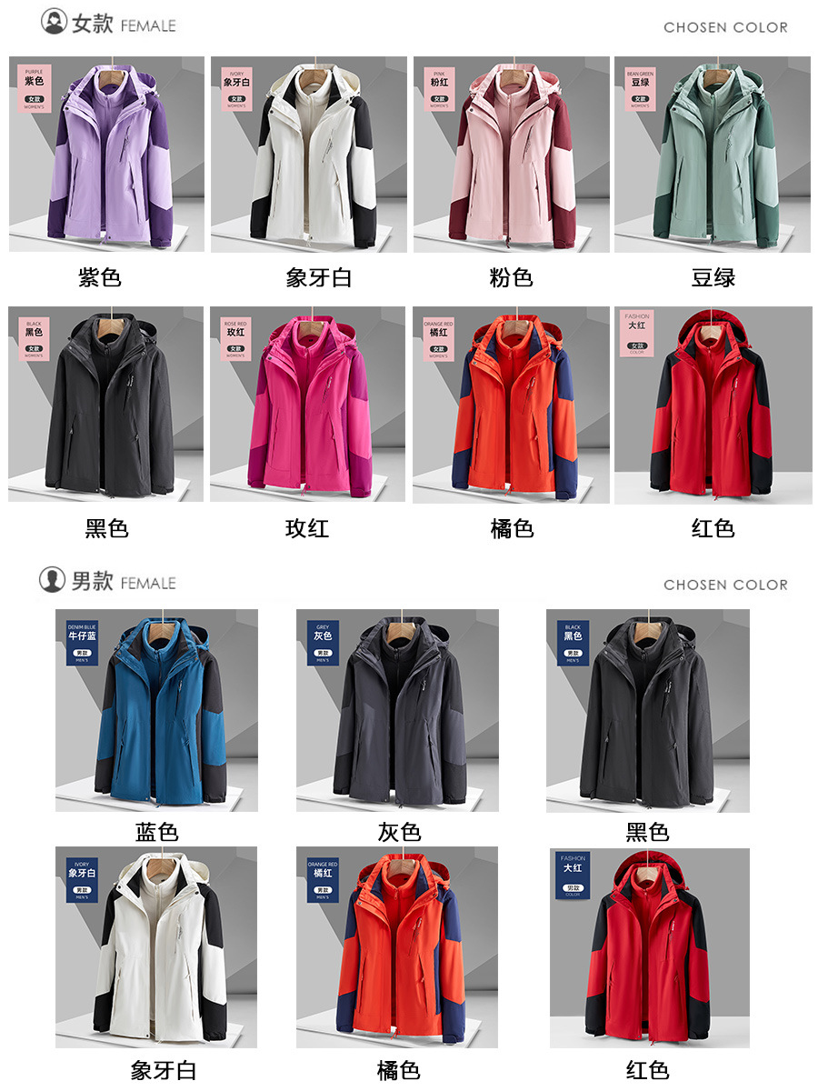 야외 커플 재킷 남성 및 여성 기모 3-in-One 분리형 투피스 방한 세트 등산 세트 인쇄 가능한 로고스토어 가기