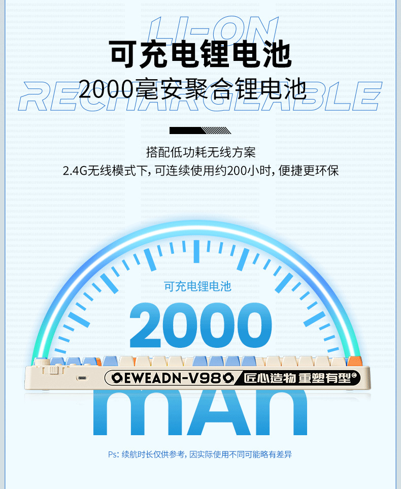 • V98 스카이 블루 무선 3모드 화면 디스플레이 [전원 디스플레이 + RGB 조명 효과]