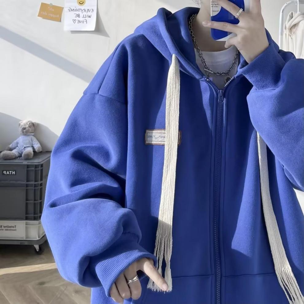 가디건 스웨터 남자의 봄과 가을 미국 패션 브랜드 후드 커플 탑 의류 십대 느슨한 스포츠 지퍼 재킷스토어 가기