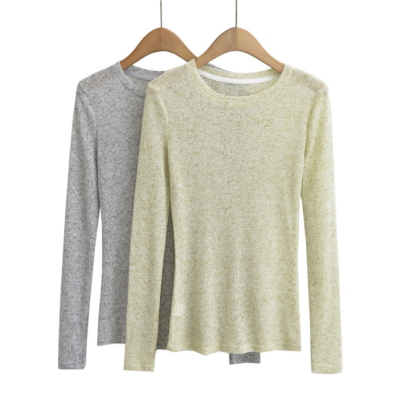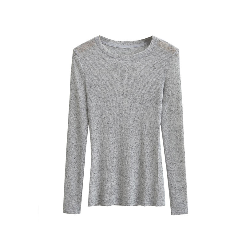 게으른 스타일 얇은 원근감 긴팔 스웨터 가을 새로운 모든 매치 슬림 핏 솔리드 컬러 풀오버 블라우스 여성용 베이스 셔츠