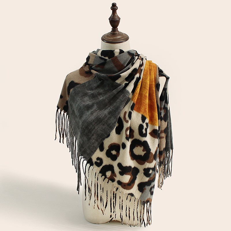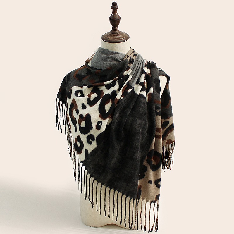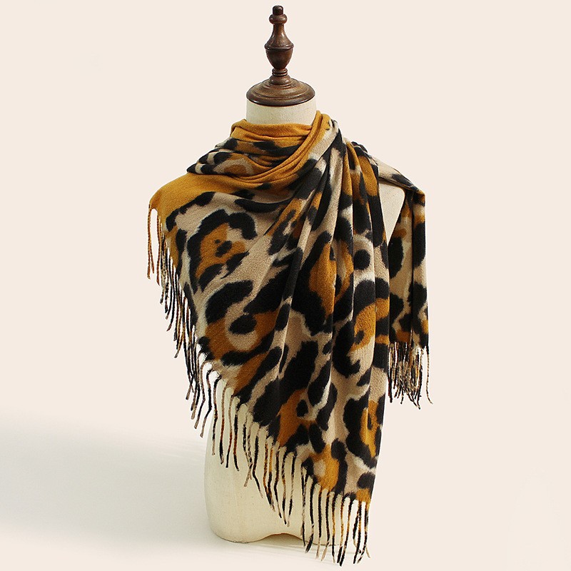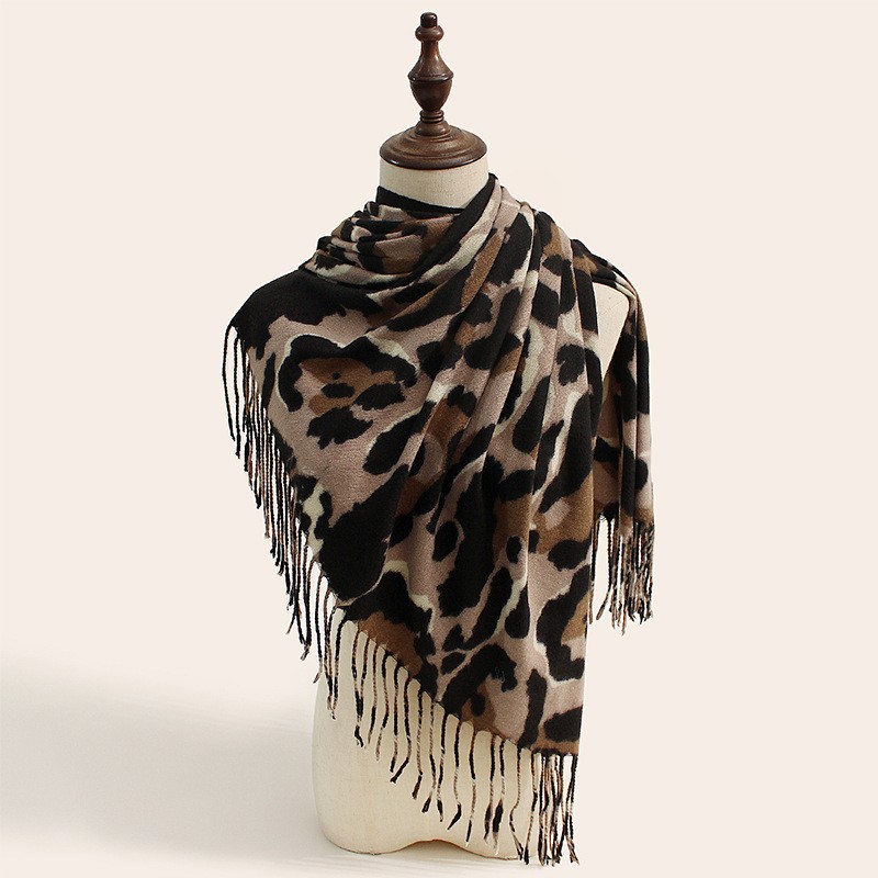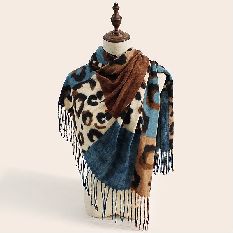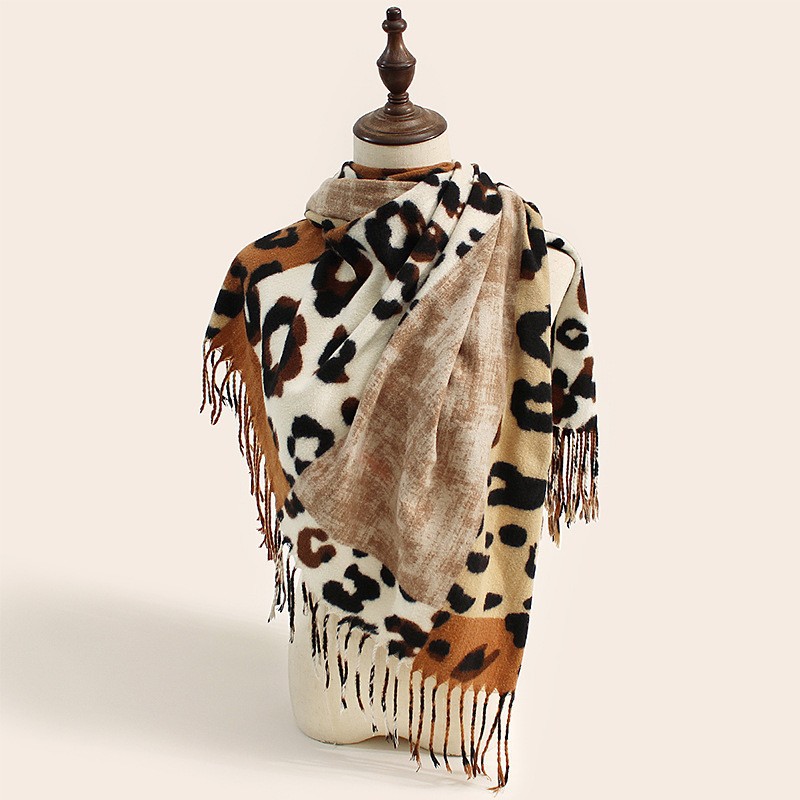2025 가을 겨울 신상 레오파드 프린트 스카프 여성용 유럽 및 미국 스타일 따뜻하고 다용도 스카프 편안하고 패셔너블한 인조 캐시미어 숄스토어 가기