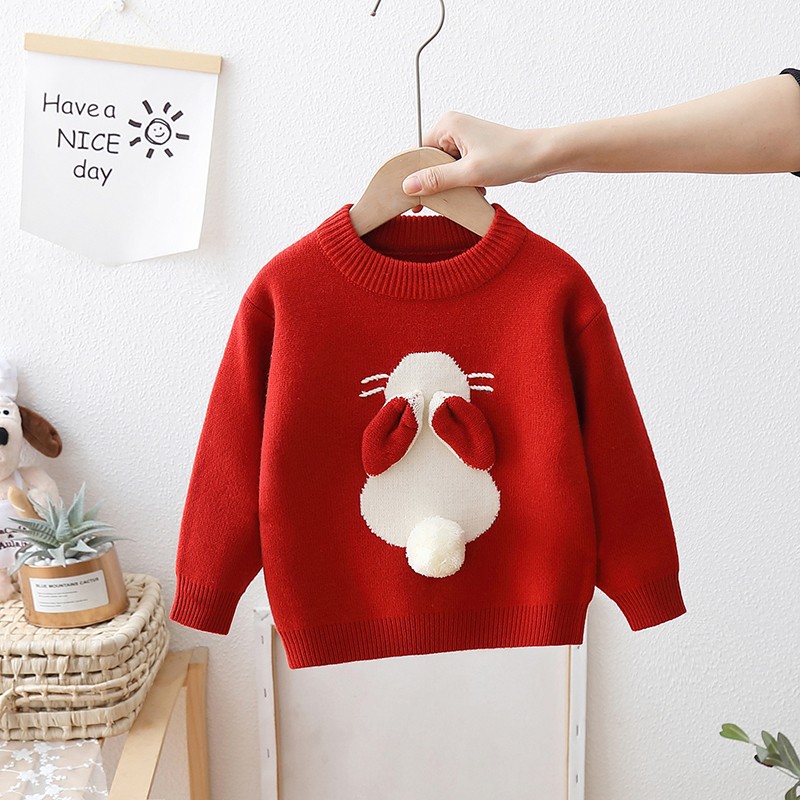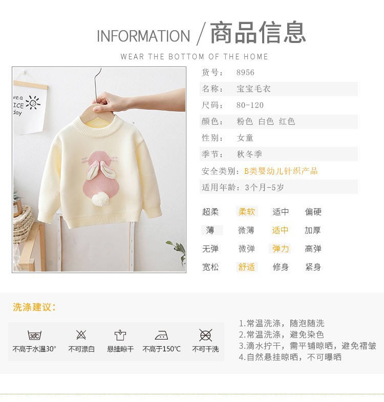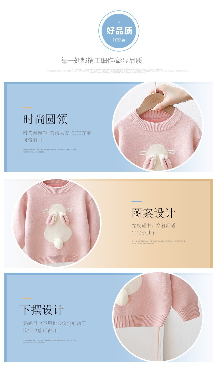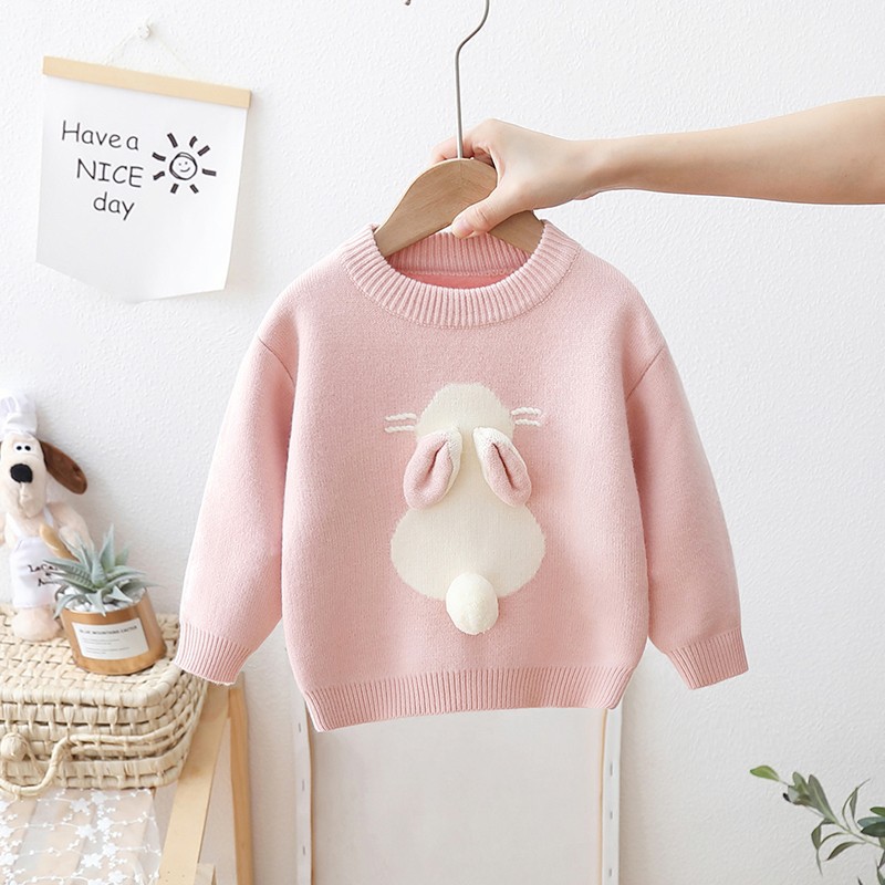 2025년 여아용 스웨터 풀오버 만화 토끼 디자인 세련된 아기 가을옷 어린이 니트웨어 이너웨어 트렌디스토어 가기
