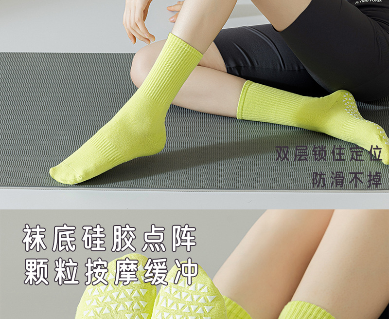 스포츠 양말 여성 요가 양말 미끄럼 방지 전문 여성용 미드 튜브 면 가을과 겨울 바닥 양말 피트니스 댄스 필라테스 양말스토어 가기