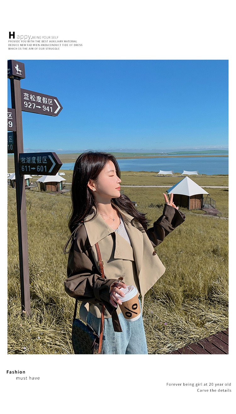키 작은 분들을 위한 숏 윈드브레이커 재킷, 2024년 초가을 신상, 한국 스타일의 시크한 디자인, 독특한 긴팔 상의