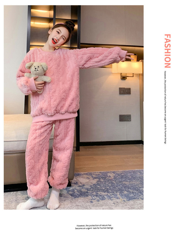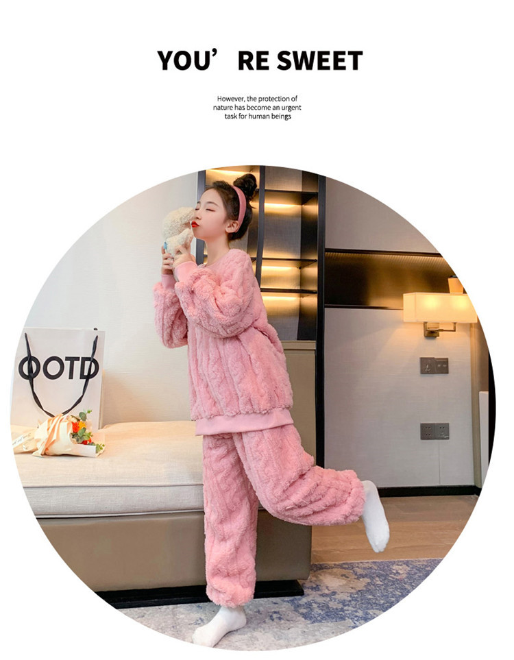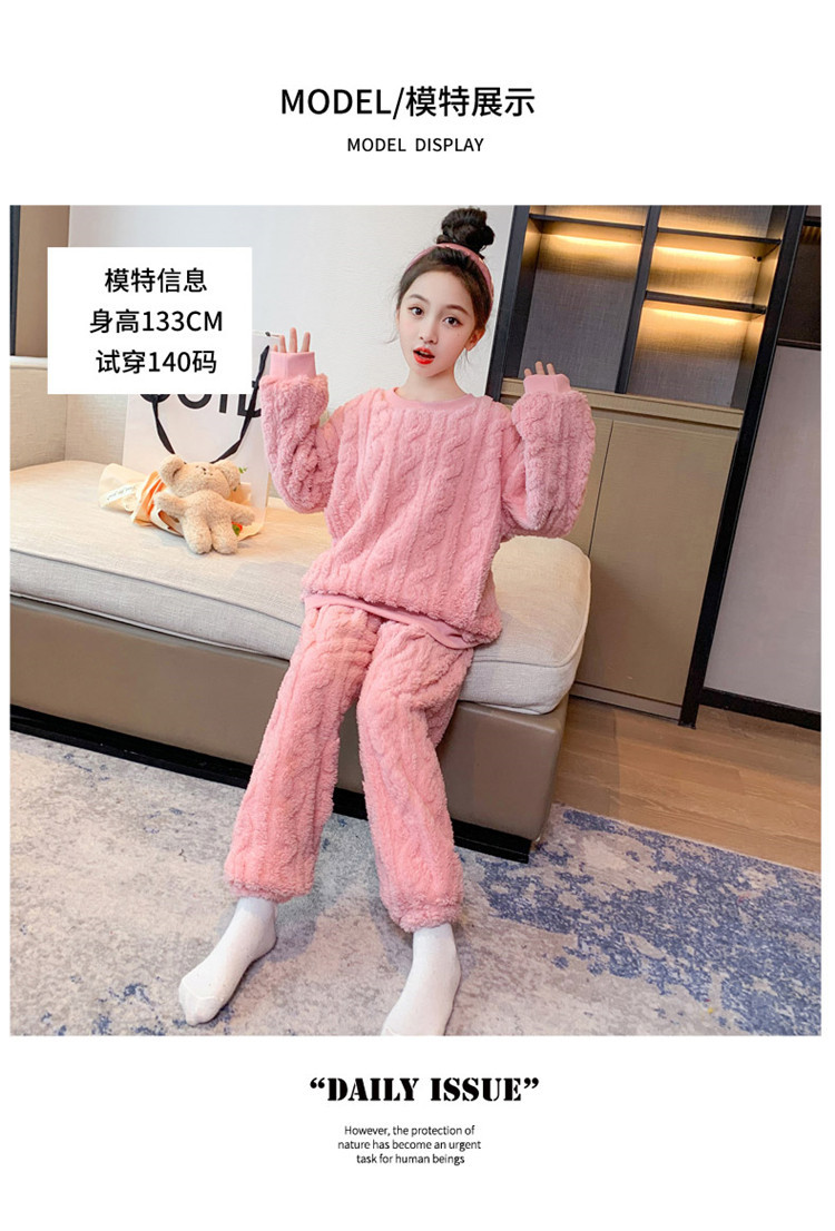 소녀 겨울 잠옷 가을과 겨울 2023 새로운 어린이 소녀 큰 어린이 산호 양털 가정 옷 두꺼운 가정 옷스토어 가기