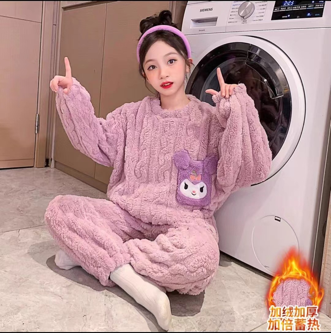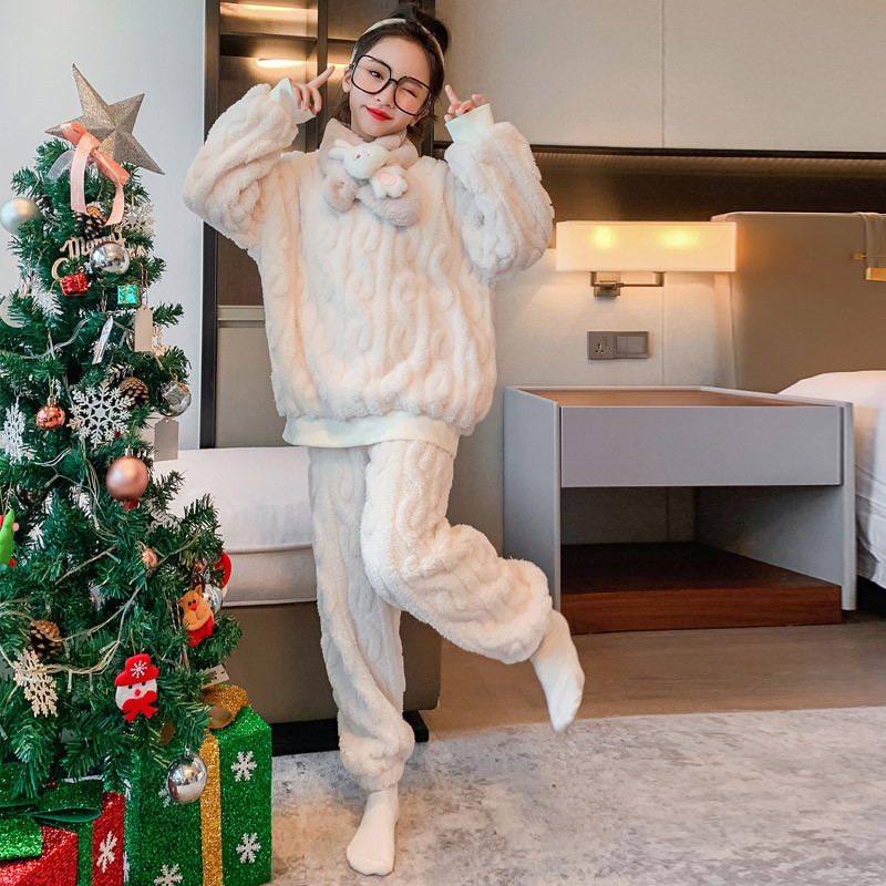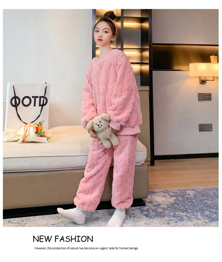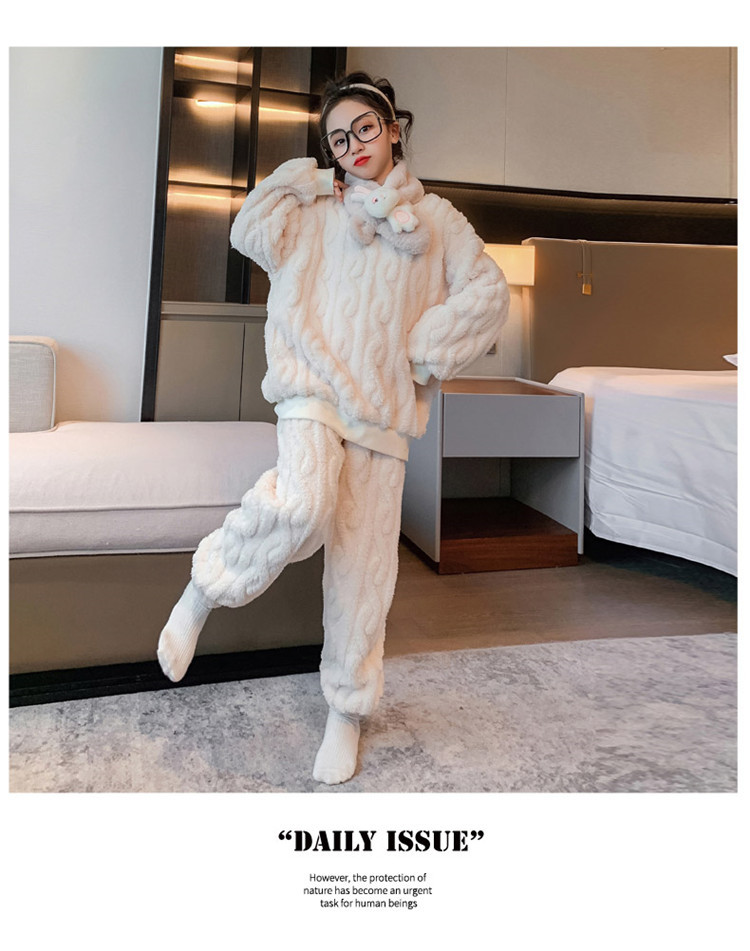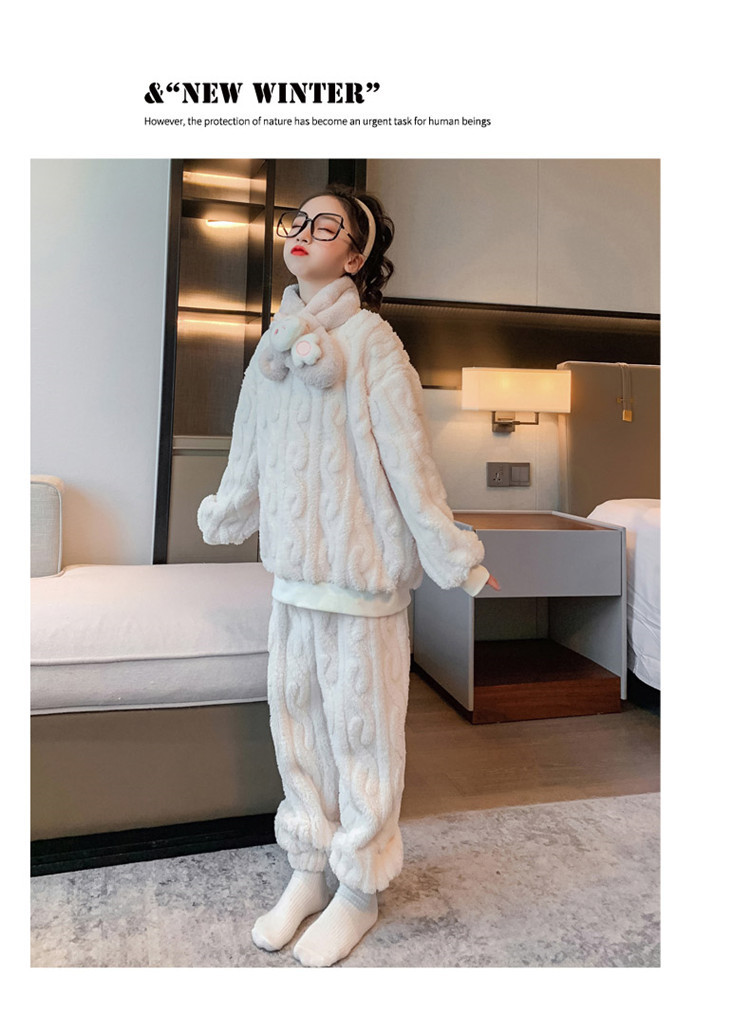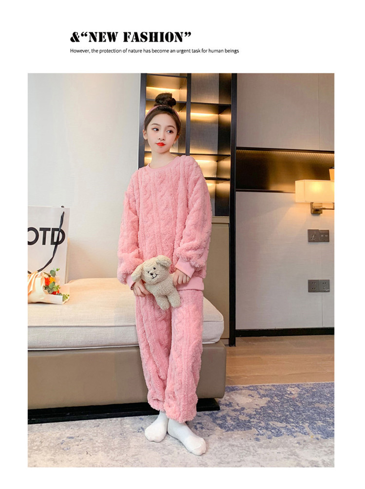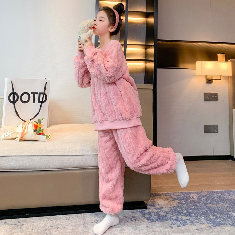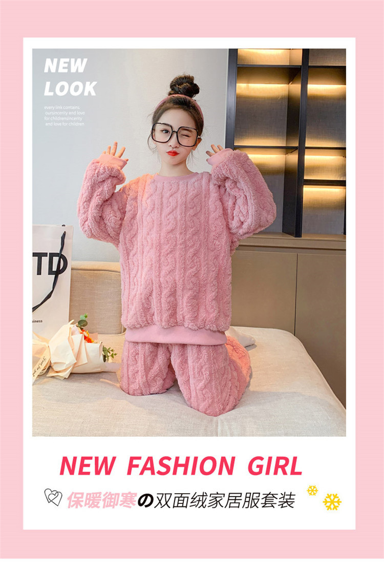 소녀 겨울 잠옷 가을과 겨울 2023 새로운 어린이 소녀 큰 어린이 산호 양털 가정 옷 두꺼운 가정 옷