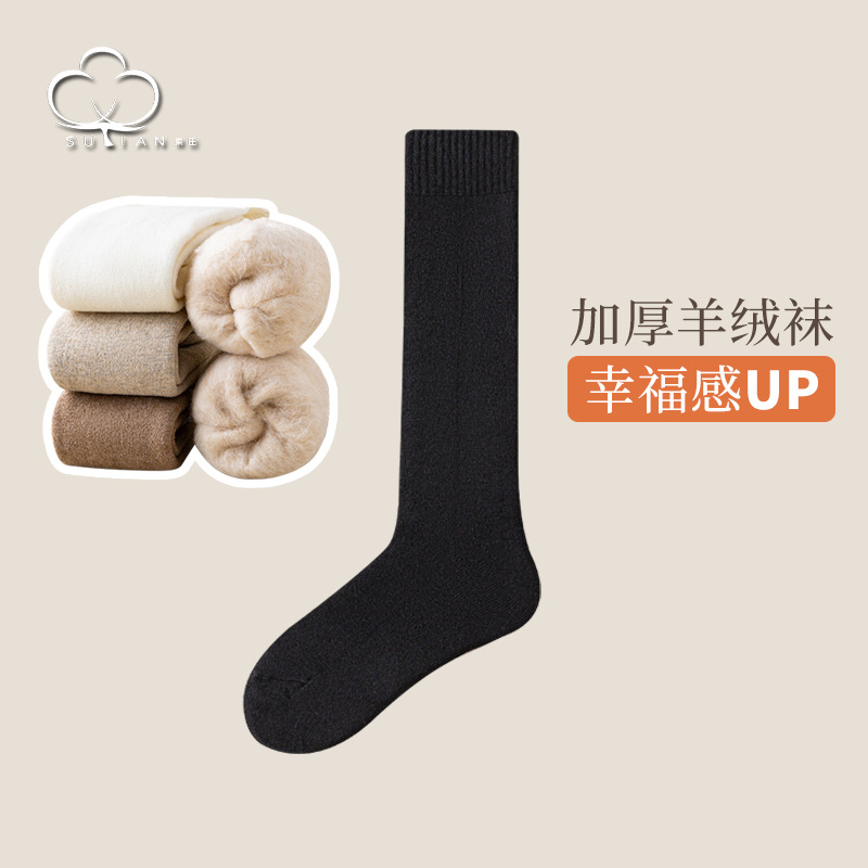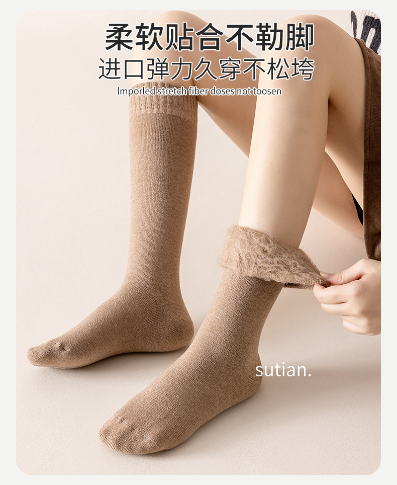 작은 다리 양말 여성 가을과 겨울 기모 두꺼운 따뜻한 양말 통기성 땀 흡수 겨울 캐시미어 테리 숙녀 긴 튜브 양말