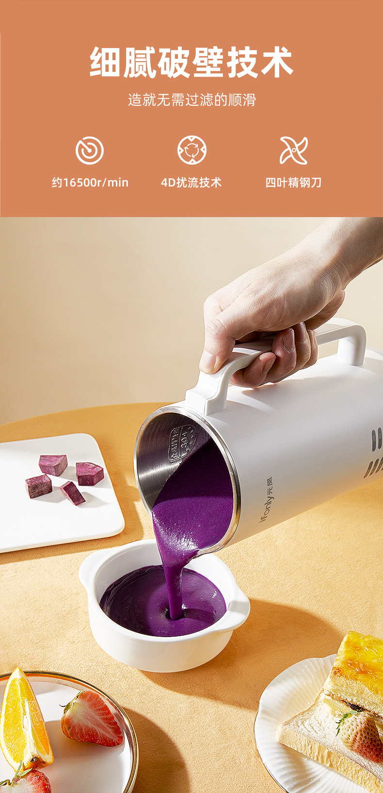 가정용 다기능 음소거 식품 보충 기계 자동 조리없는 필터가없는 미니 콩 우유 기계 곡물 벽 깨는 기계