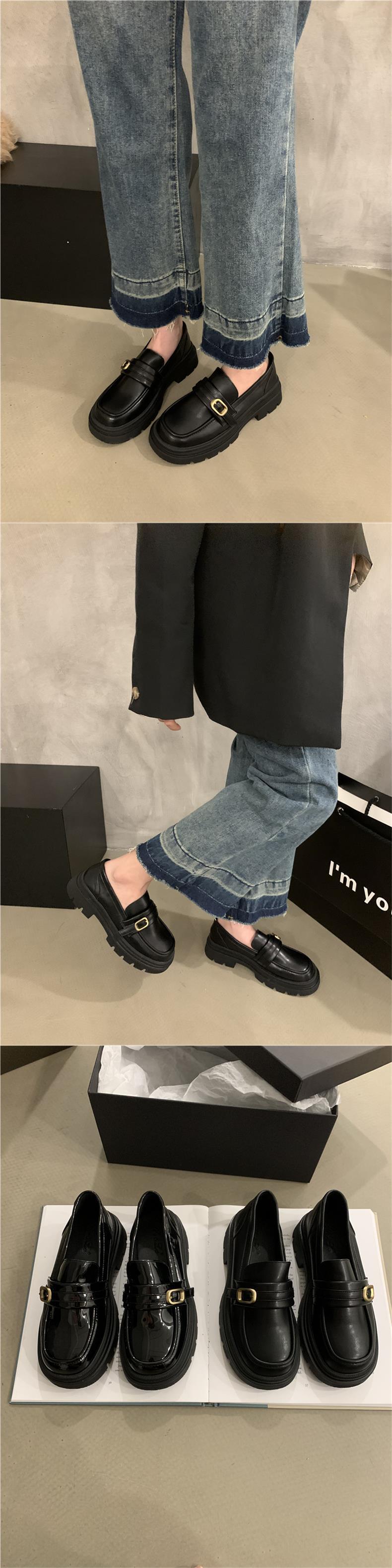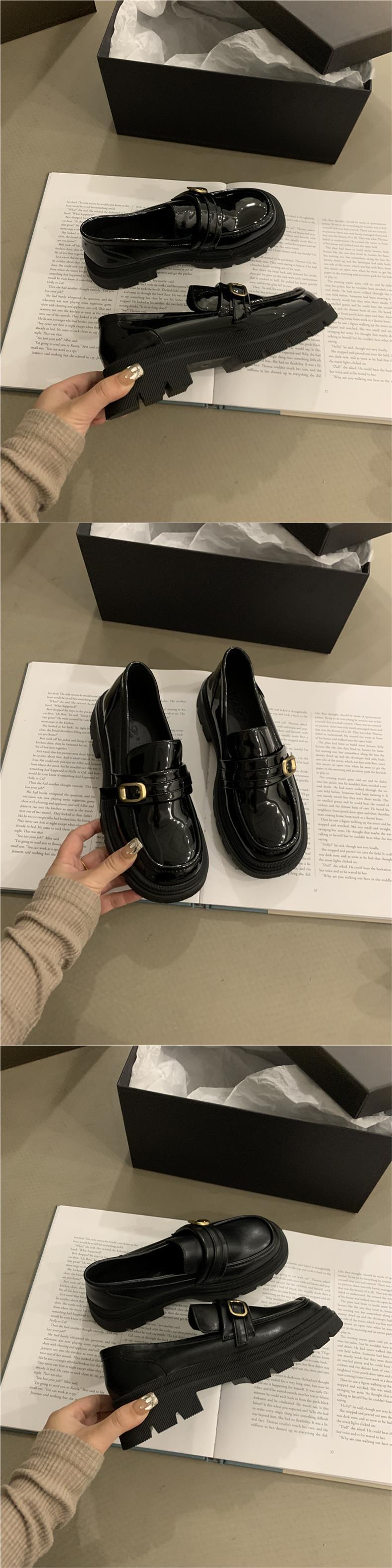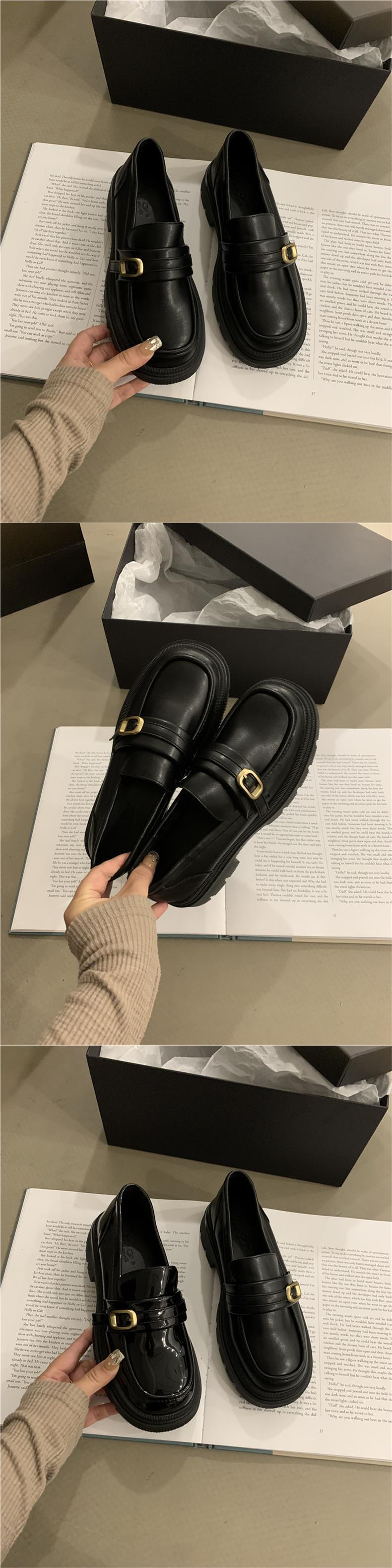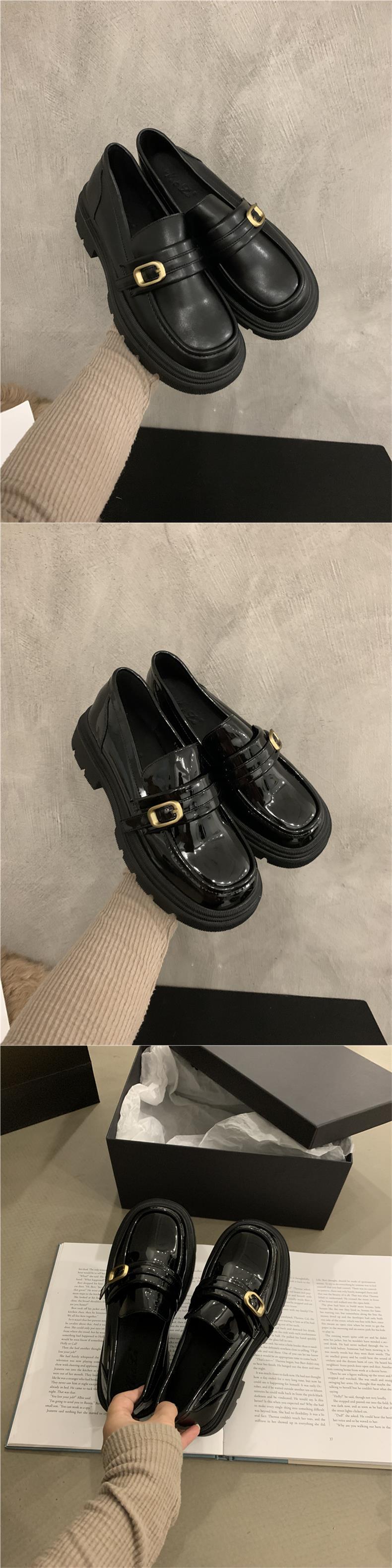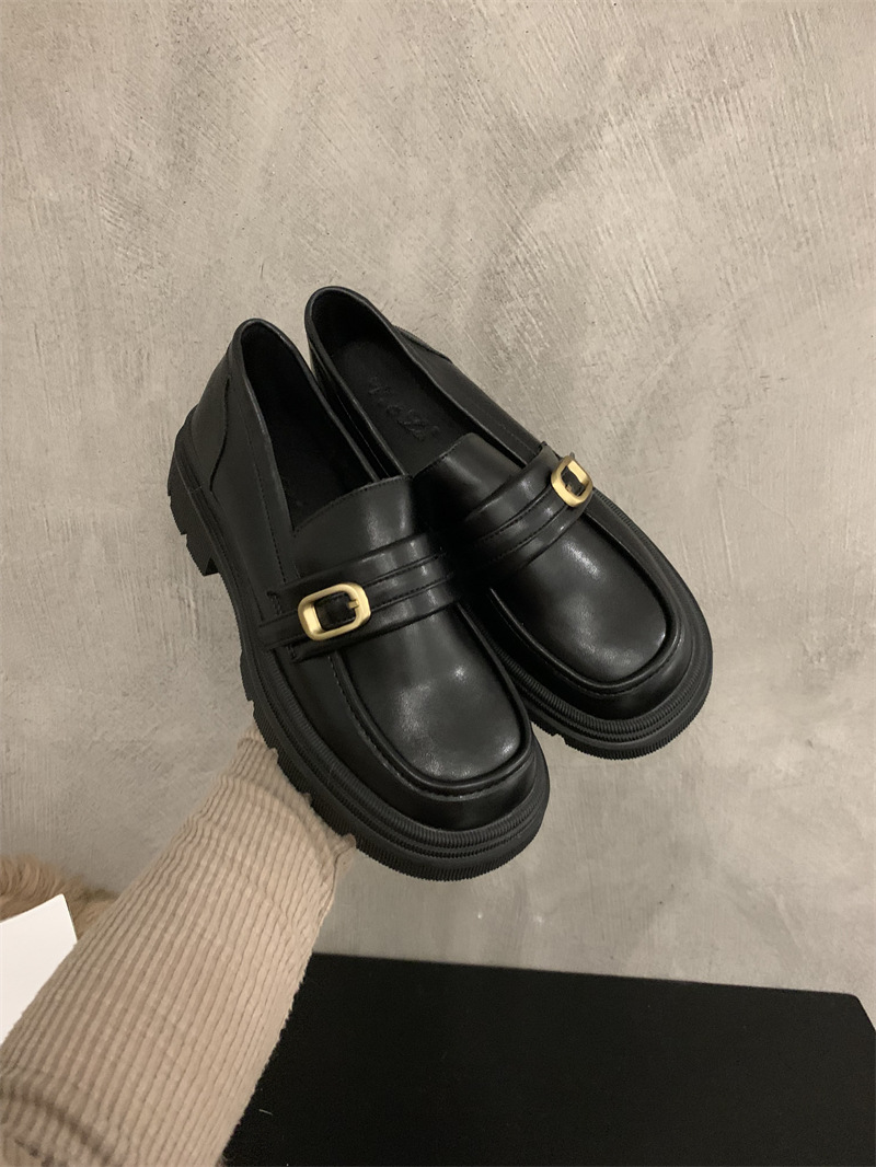 영국 작은 가죽 신발 jk 신발 하이 센스 레트로 청키 힐 블랙 로퍼 프랑스 가을과 겨울 여성 신발 슬립 온 신발스토어 가기