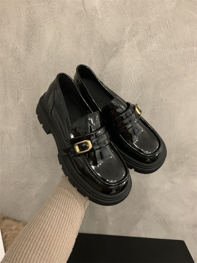 영국 작은 가죽 신발 jk 신발 하이 센스 레트로 청키 힐 블랙 로퍼 프랑스 가을과 겨울 여성 신발 슬립 온 신발