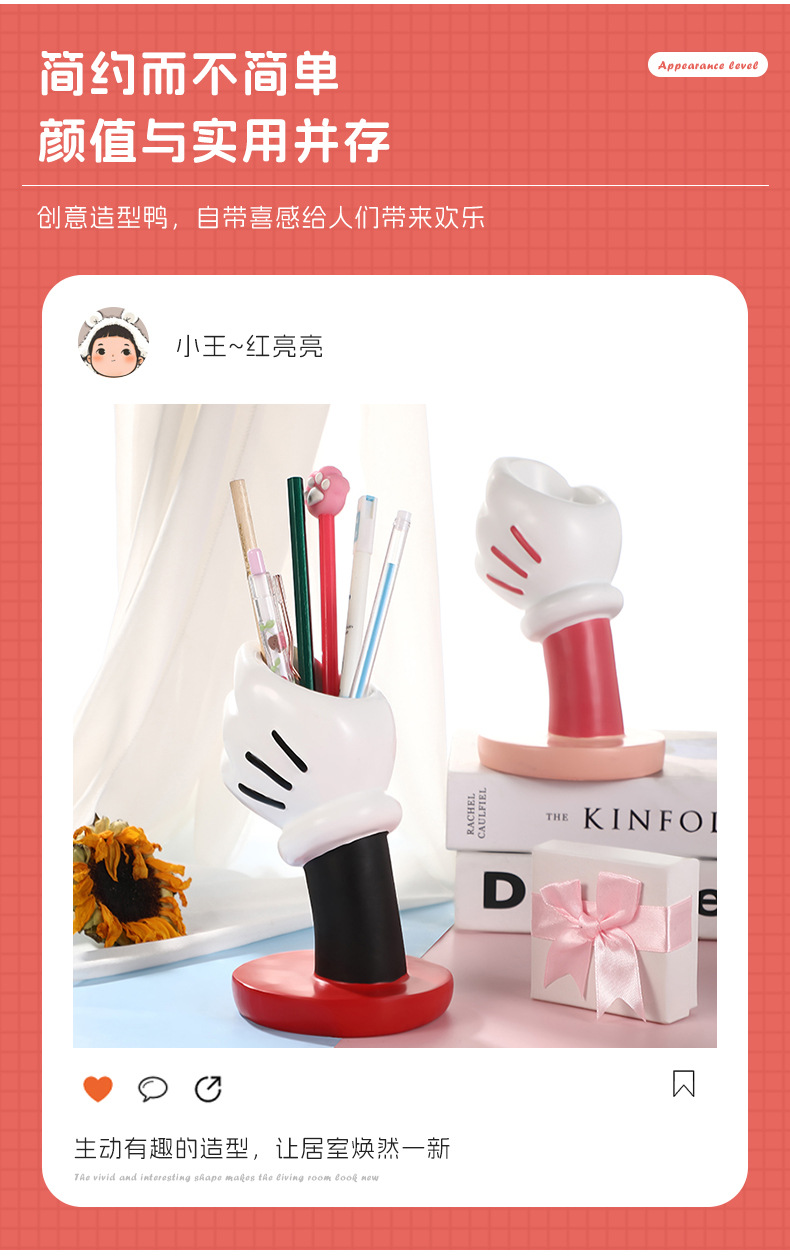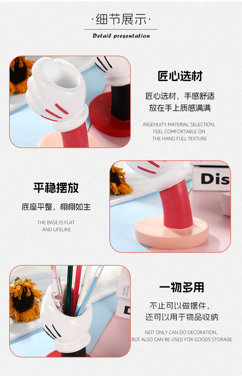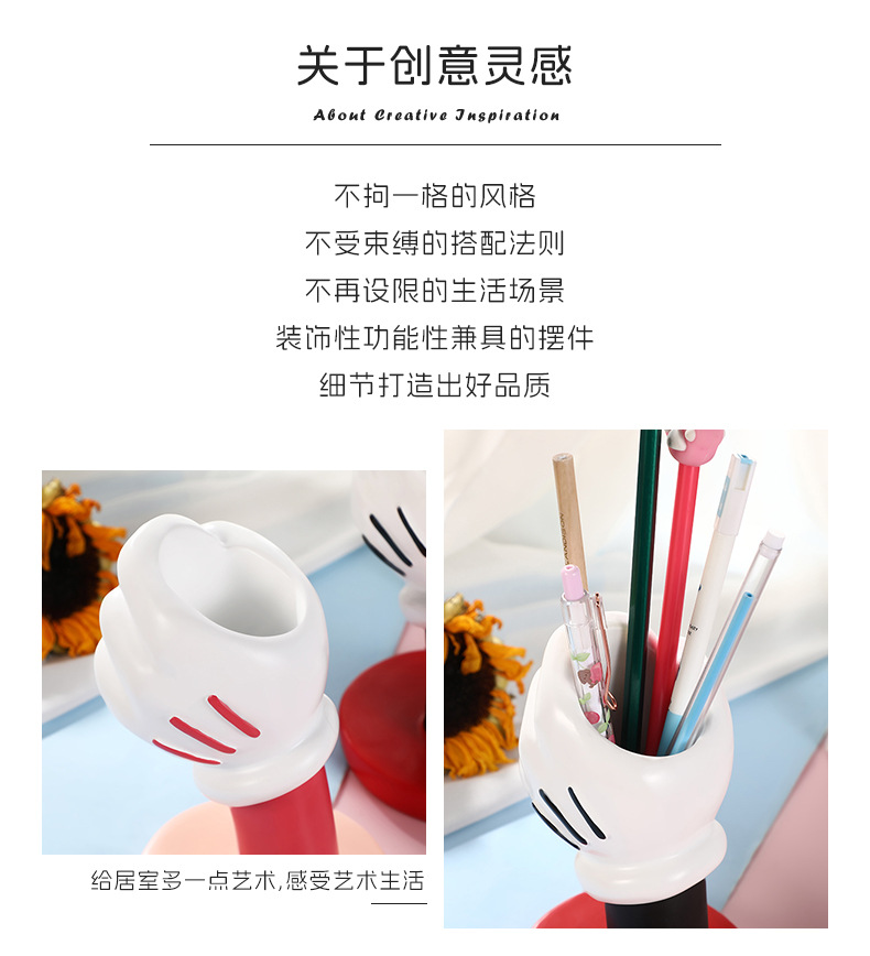 크리 에이 티브 미키 데스크탑 장식 미키 손 만화 펜 홀더 보관 장식품 수지 공예스토어 가기