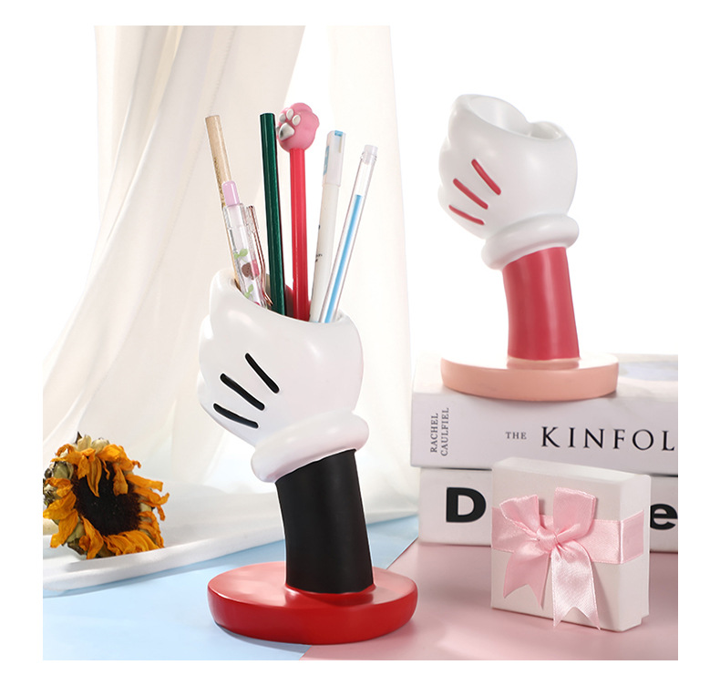 크리 에이 티브 미키 데스크탑 장식 미키 손 만화 펜 홀더 보관 장식품 수지 공예