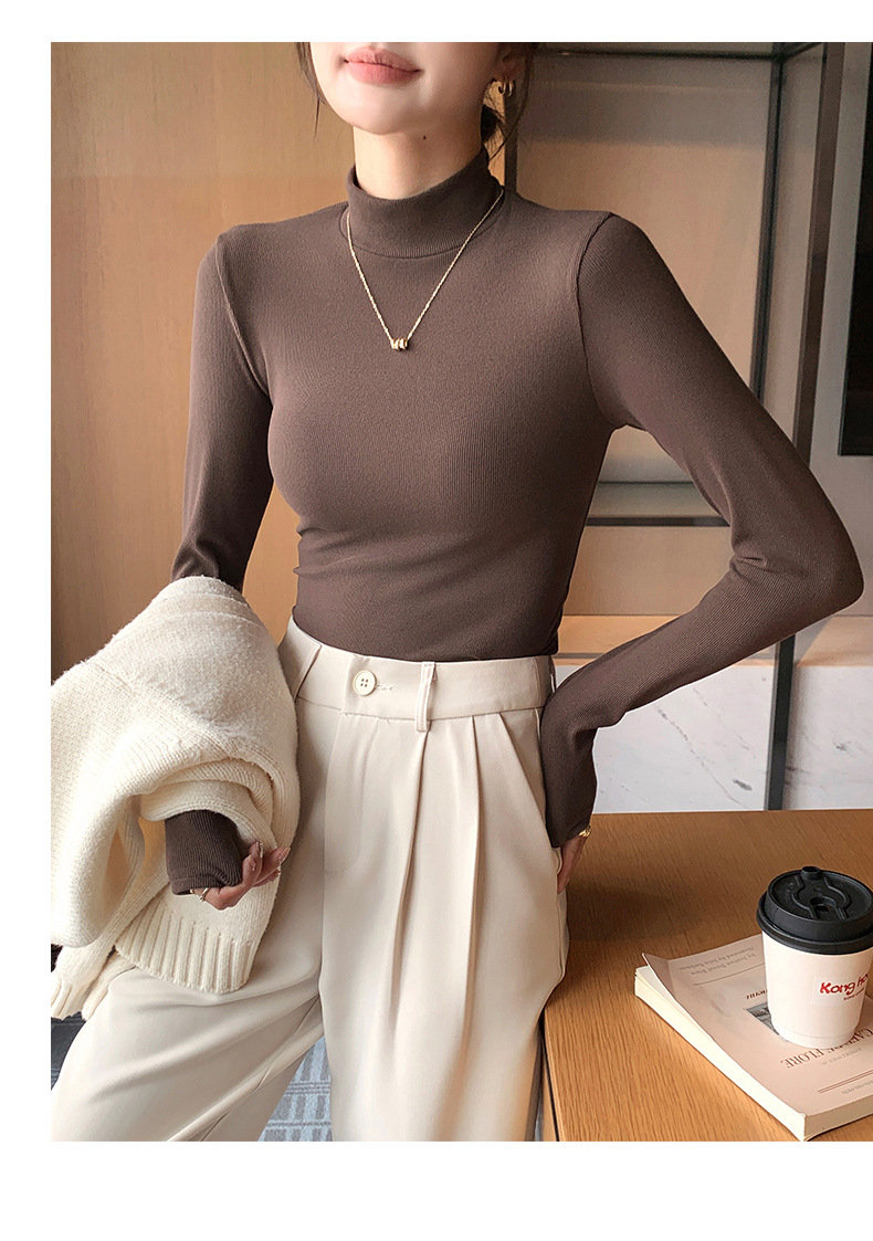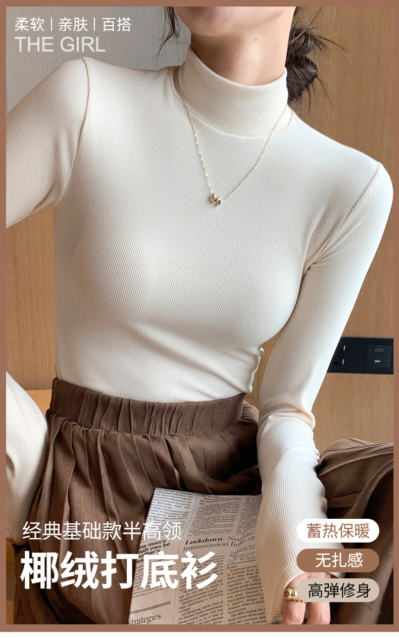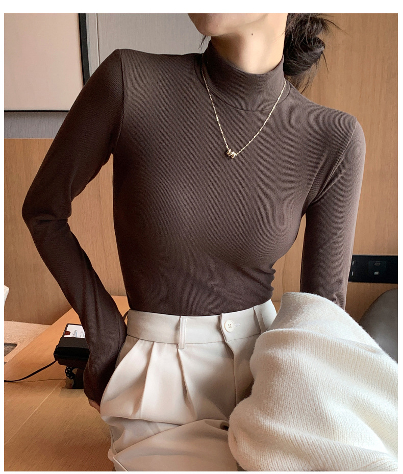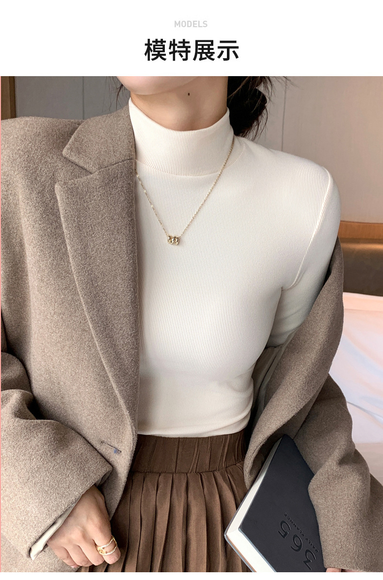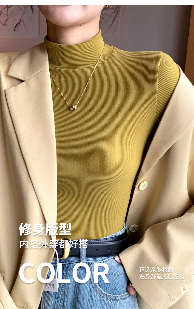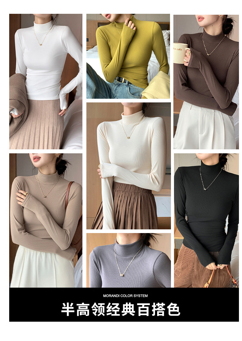 H329 여성용 니트 하프 터틀넥 바닥 셔츠, 새로운 가을 겨울 이너웨어, 흑백 가을 코트, 서양식 미드 칼라 풀오버 긴 소매스토어 가기