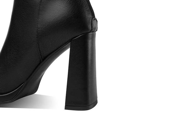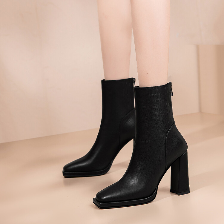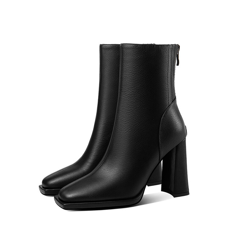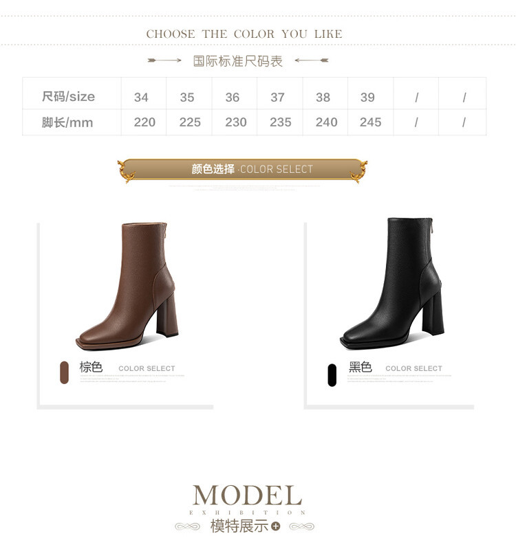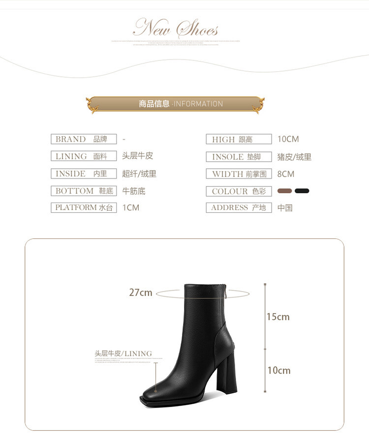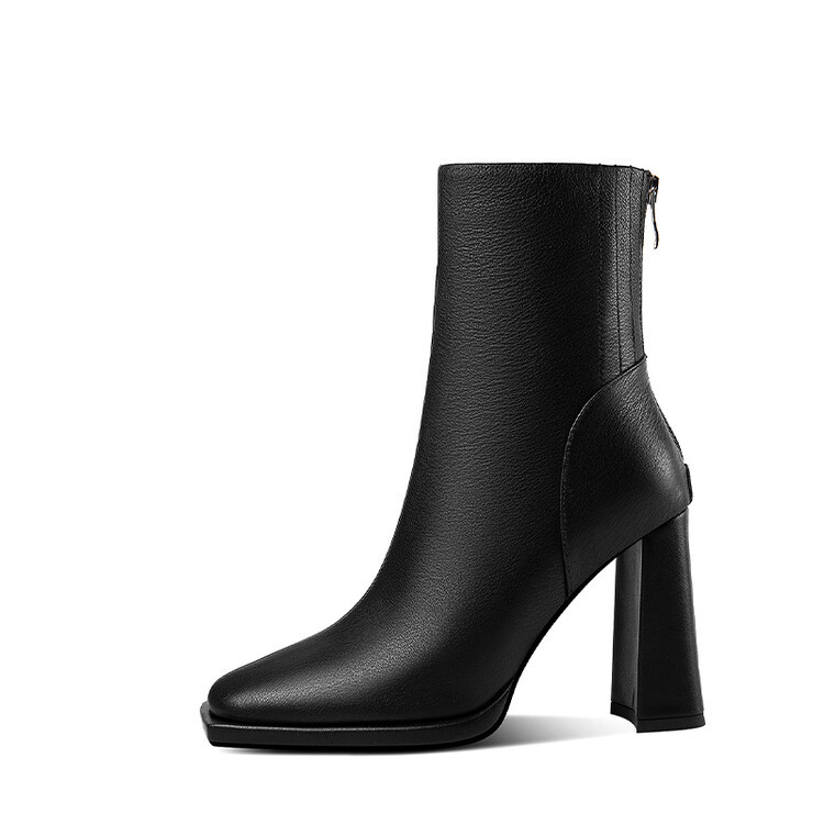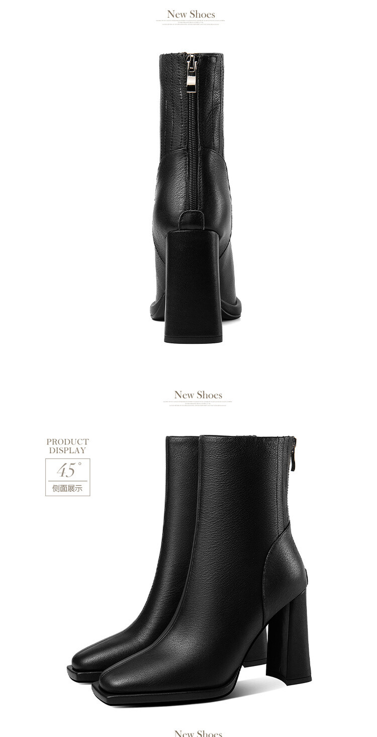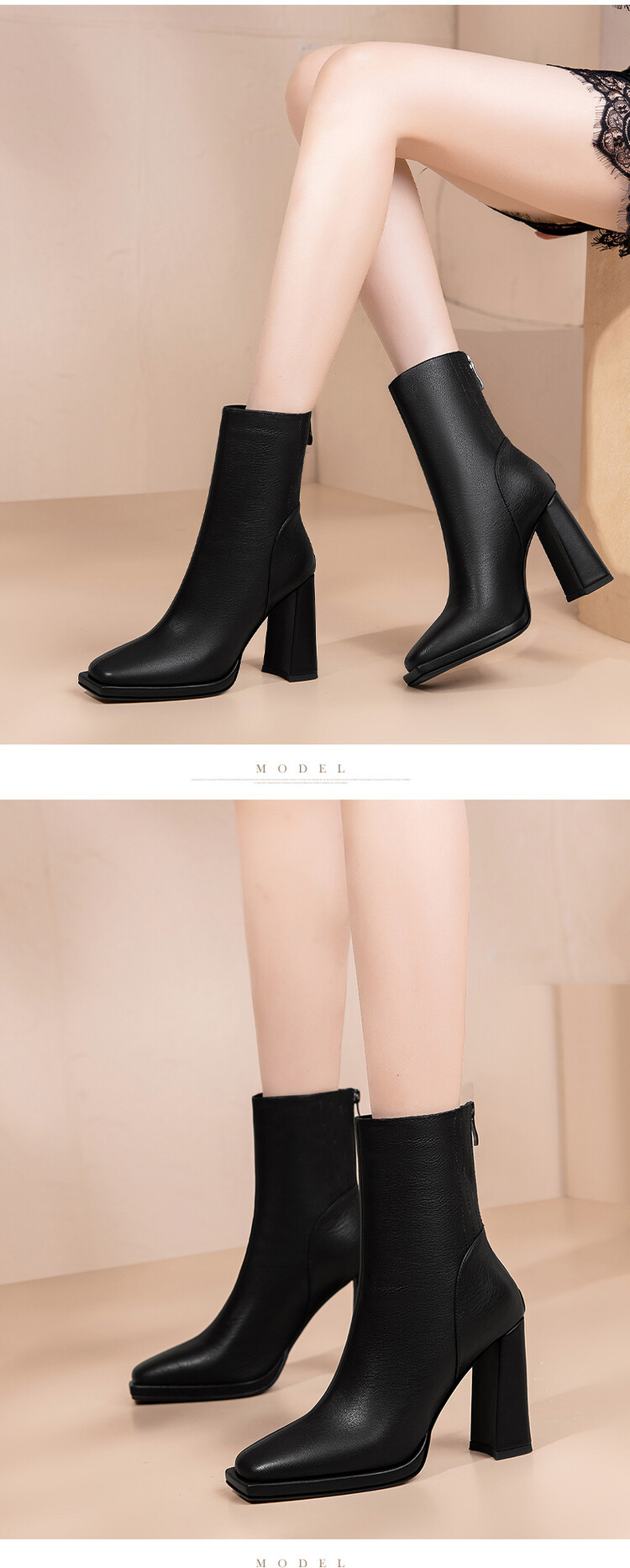 짧은 허리 발목 부츠 여성용 2023 가을과 겨울 새로운 소가죽 스퀘어 헤드 방수 테이블 슈퍼 하이힐 부츠 청키 힐 백 지퍼 마틴 부츠