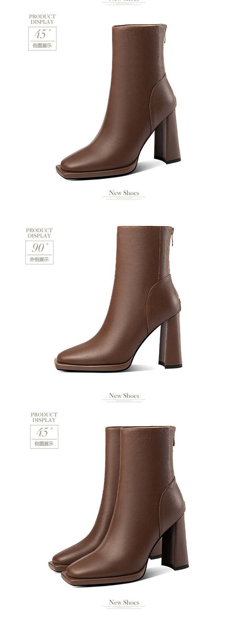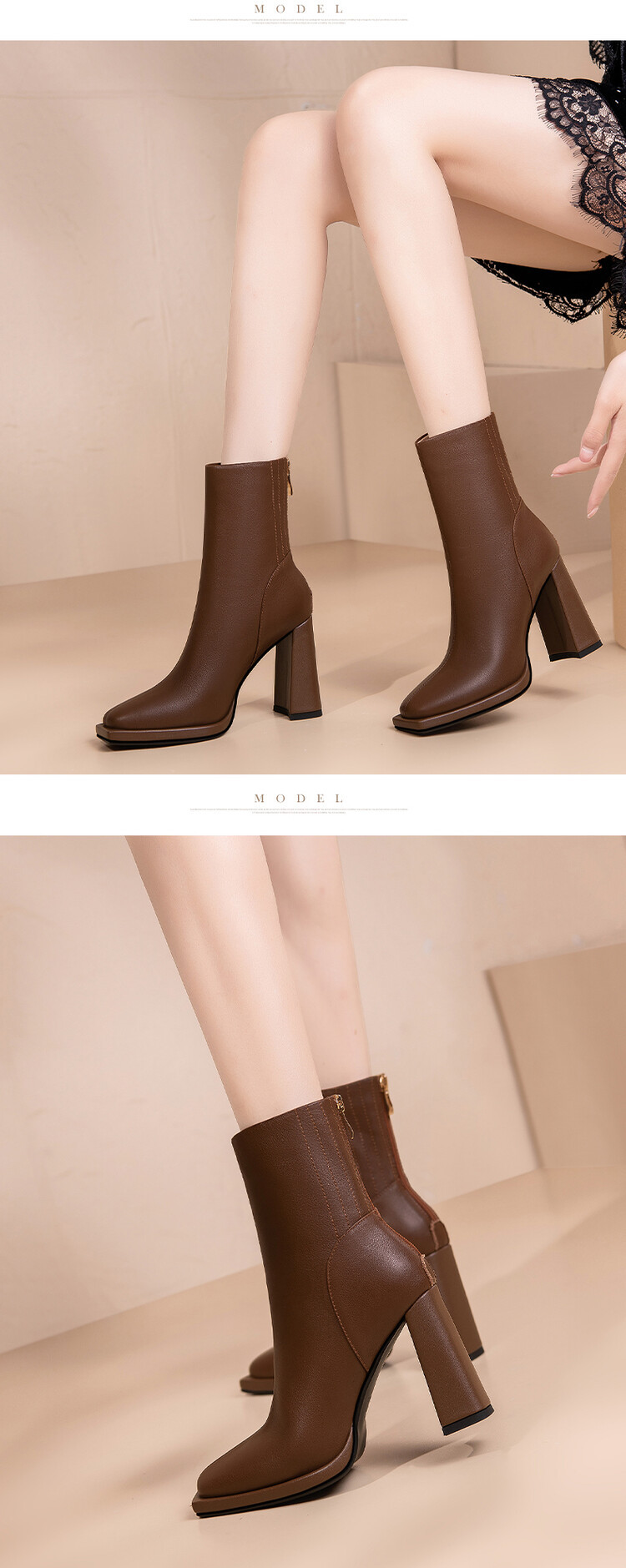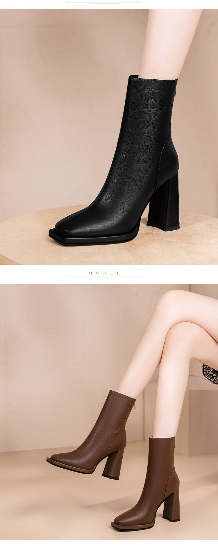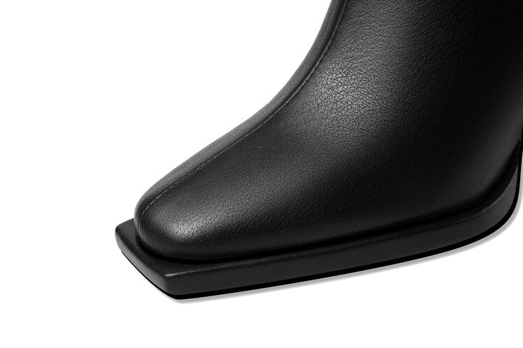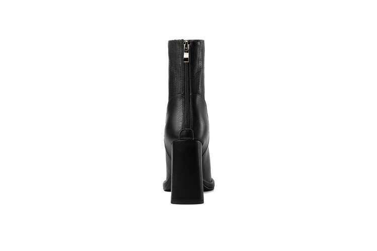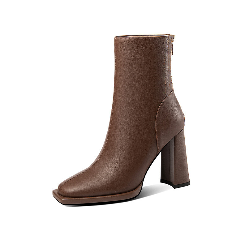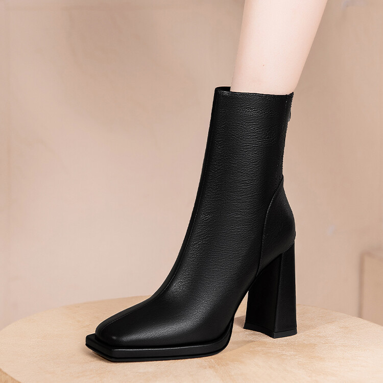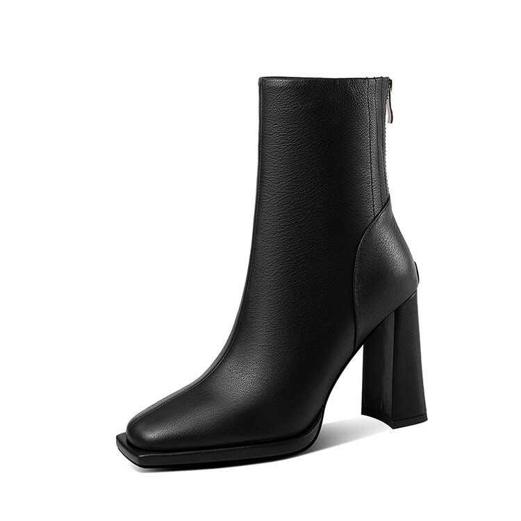 짧은 허리 발목 부츠 여성용 2023 가을과 겨울 새로운 소가죽 스퀘어 헤드 방수 테이블 슈퍼 하이힐 부츠 청키 힐 백 지퍼 마틴 부츠