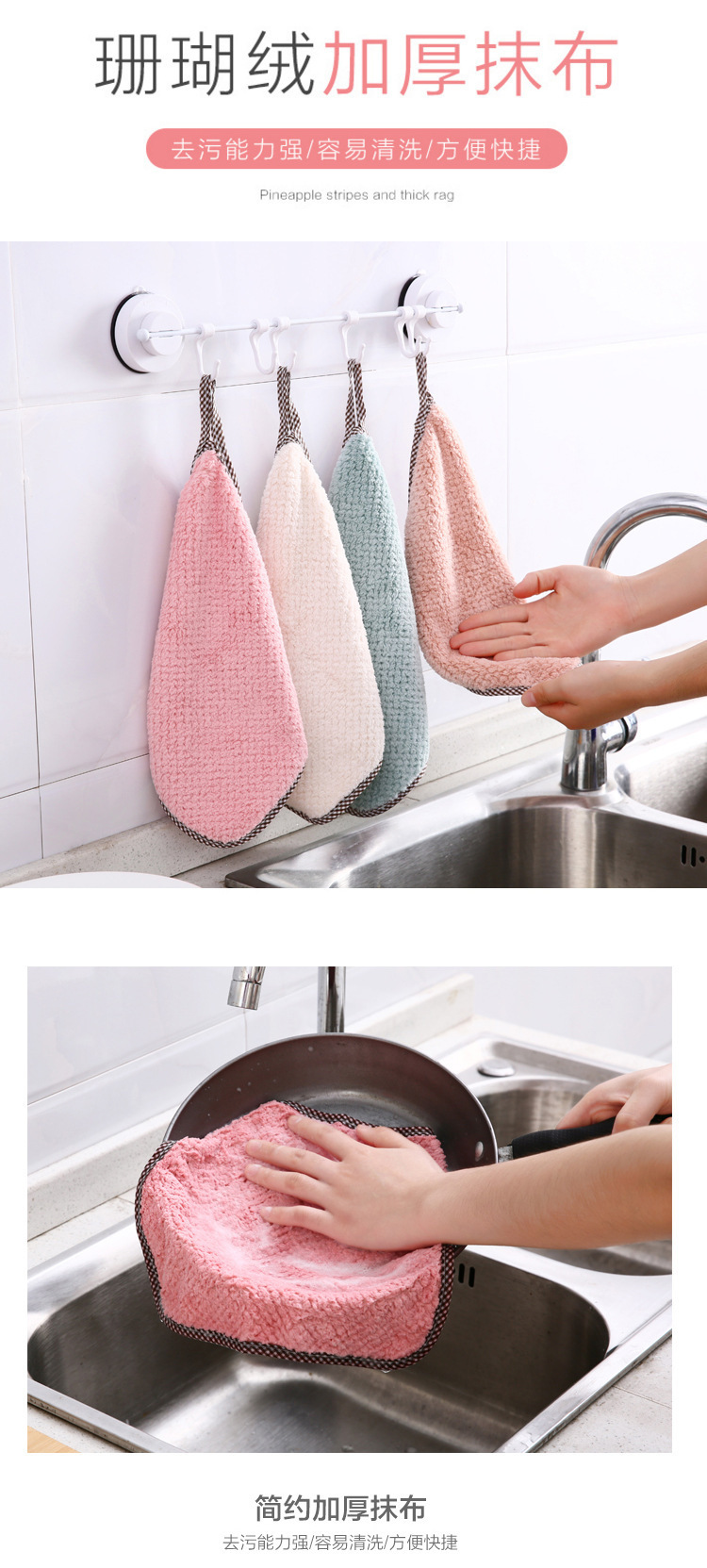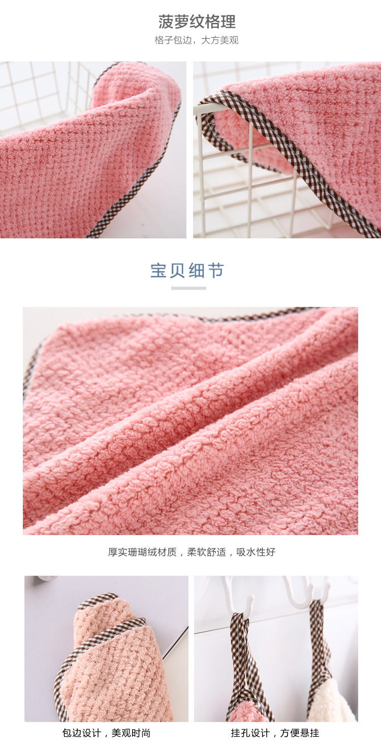 주방용 파인애플 무늬 행주, 걸 수 있는 양면 코랄벨벳 행주, 보풀 없고 흡수력 좋은 손 닦는 수건, 타월 공장