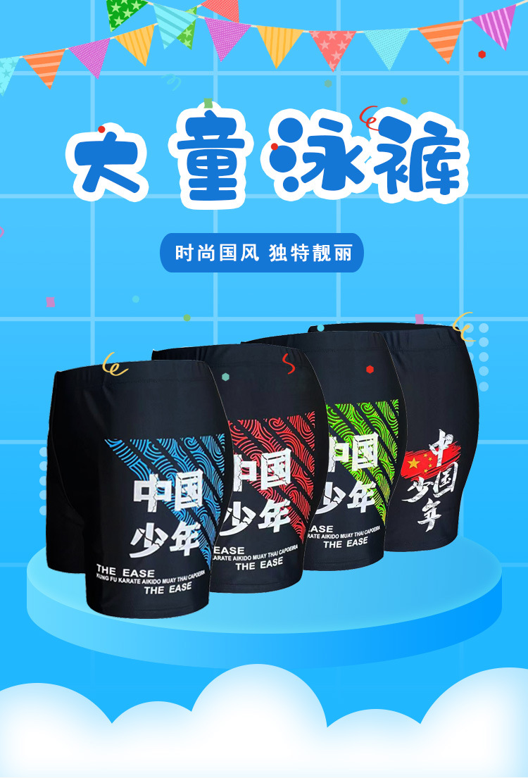 대형 어린이 및 소년을위한 어린이 수영 트렁크 속건 통기성 권투 선수 Guofeng 청소년 학생 수영 트렁크 공장 도매스토어 가기