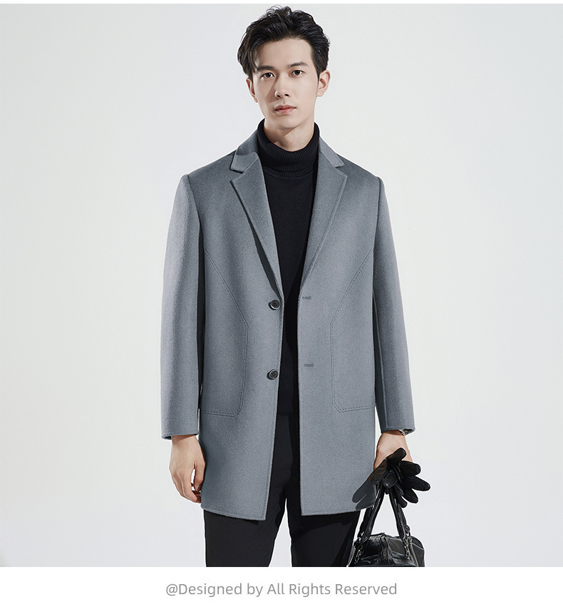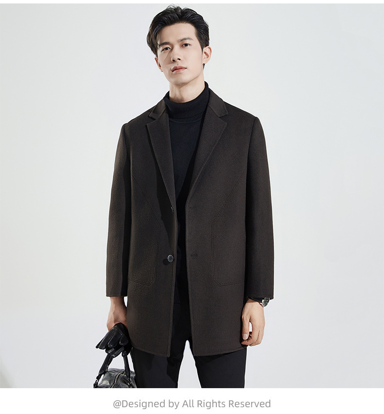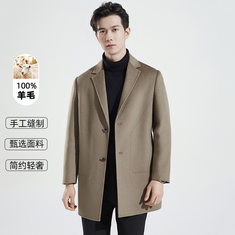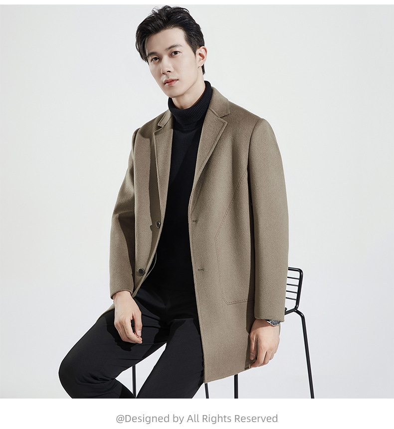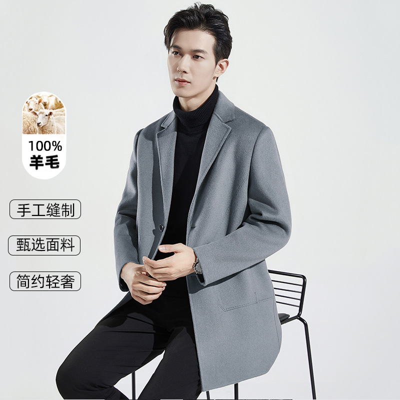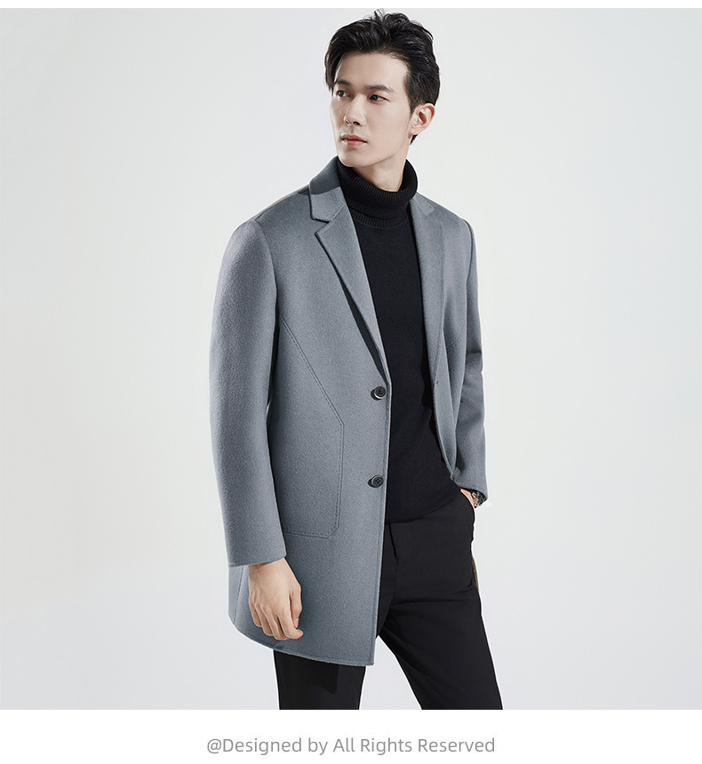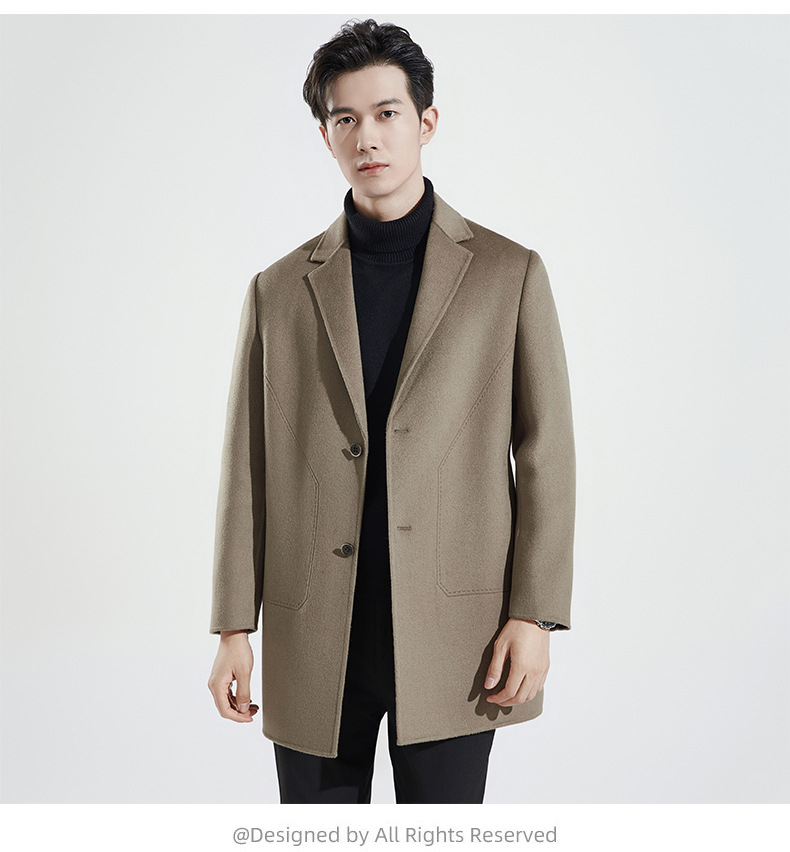 100 순수 양모 양면 양모 코트 비즈니스 캐주얼 긴팔 두꺼운 남성용 중장 모직 코트