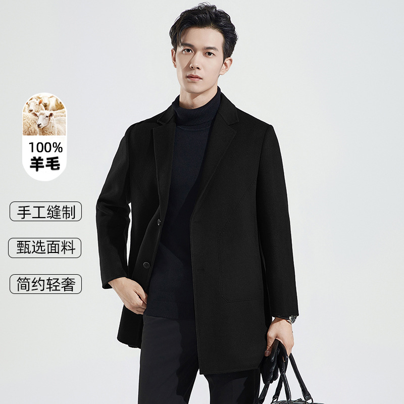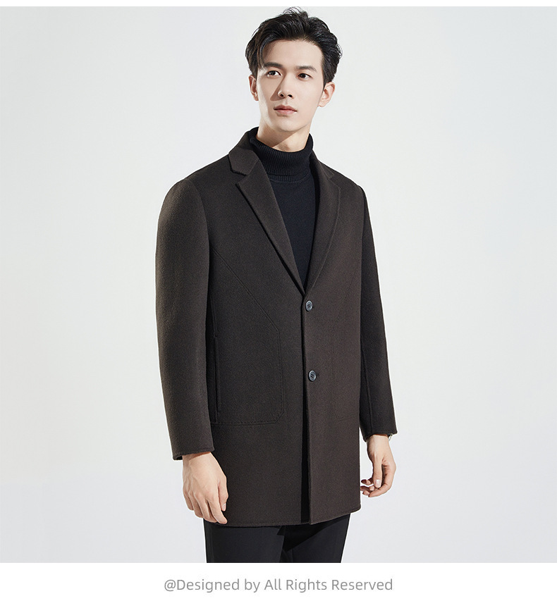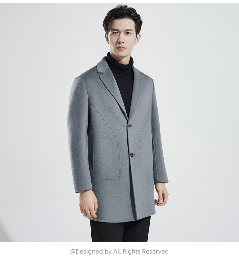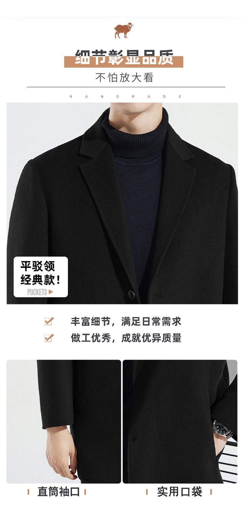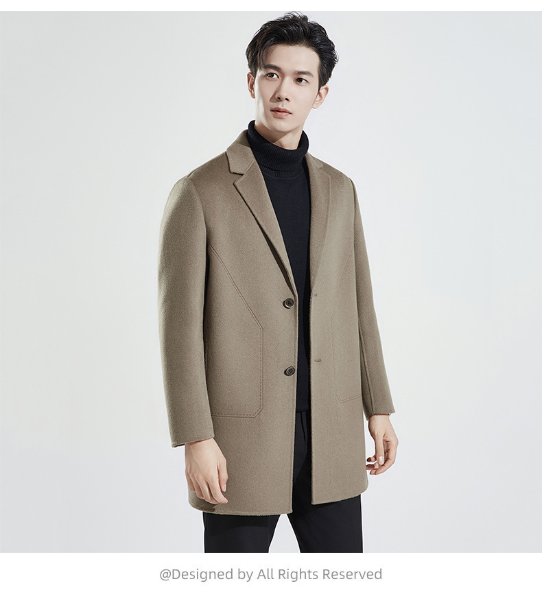 100 순수 양모 양면 양모 코트 비즈니스 캐주얼 긴팔 두꺼운 남성용 중장 모직 코트