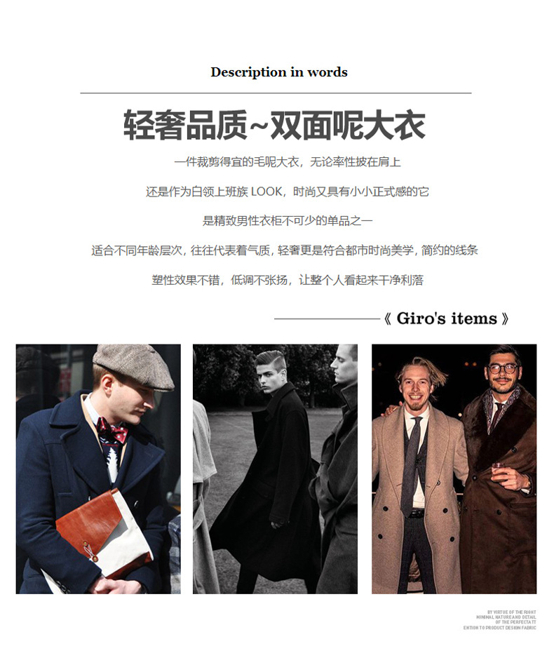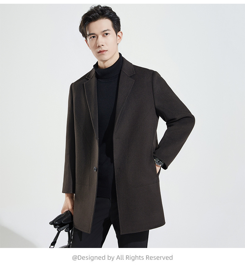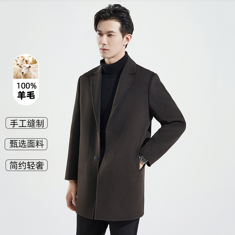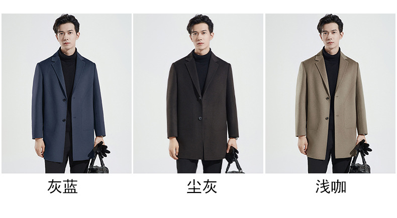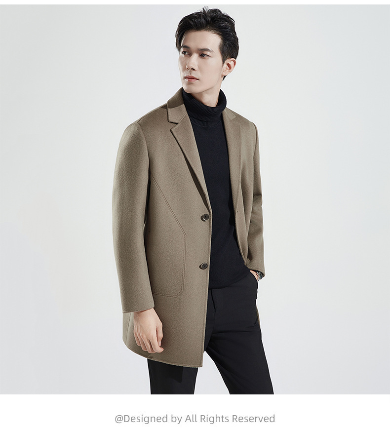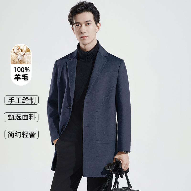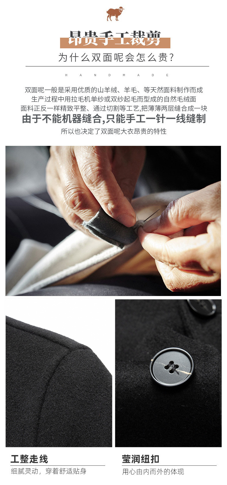 100 순수 양모 양면 양모 코트 비즈니스 캐주얼 긴팔 두꺼운 남성용 중장 모직 코트