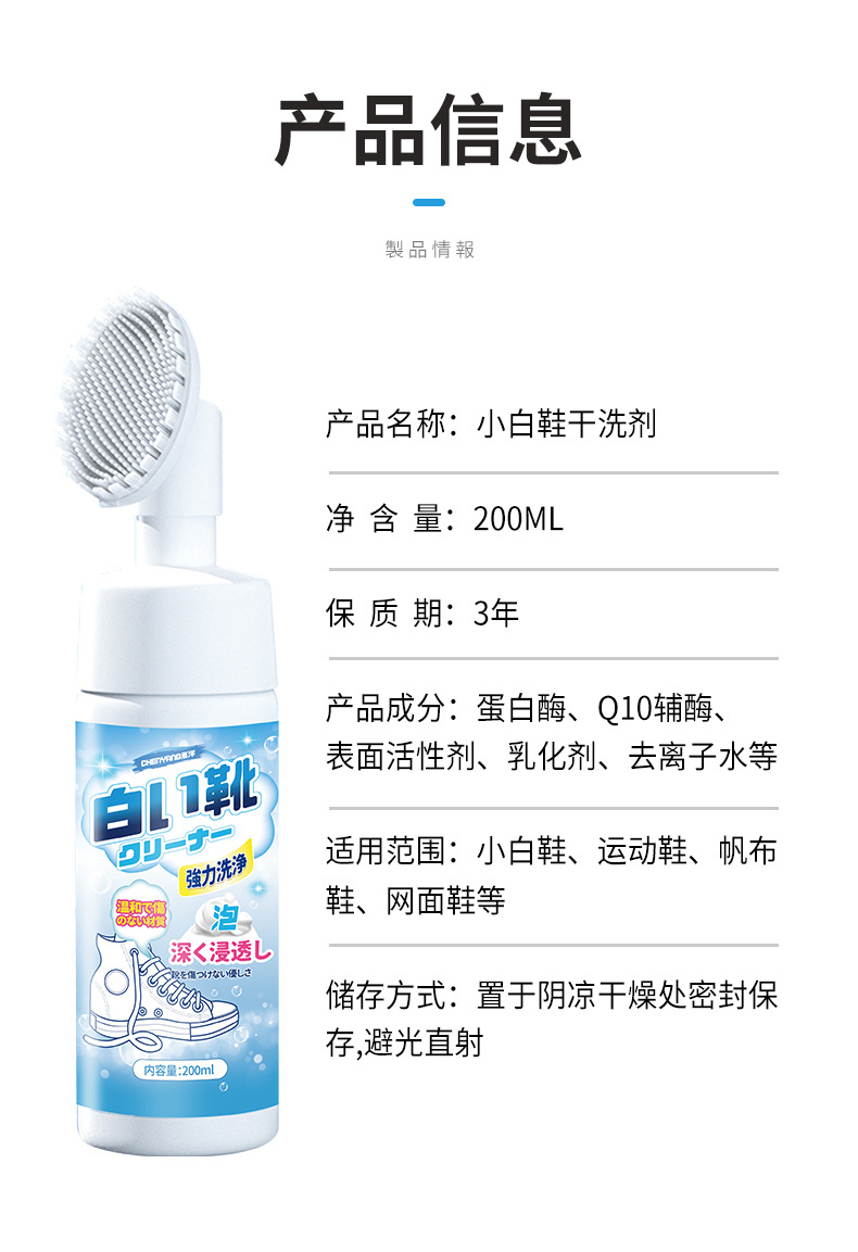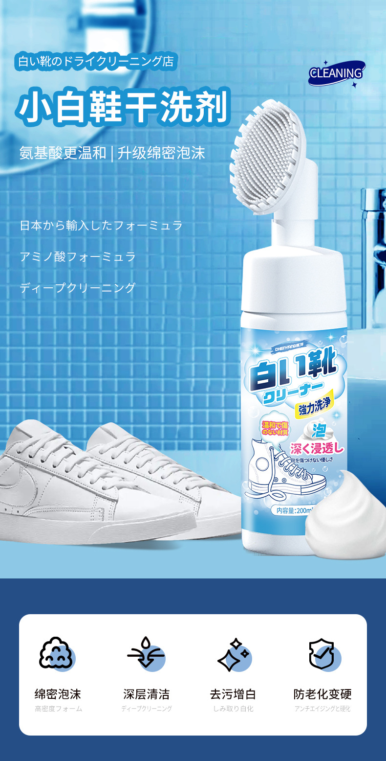 • 브러시 헤드가있는 작은 흰색 신발 클리너 200ml