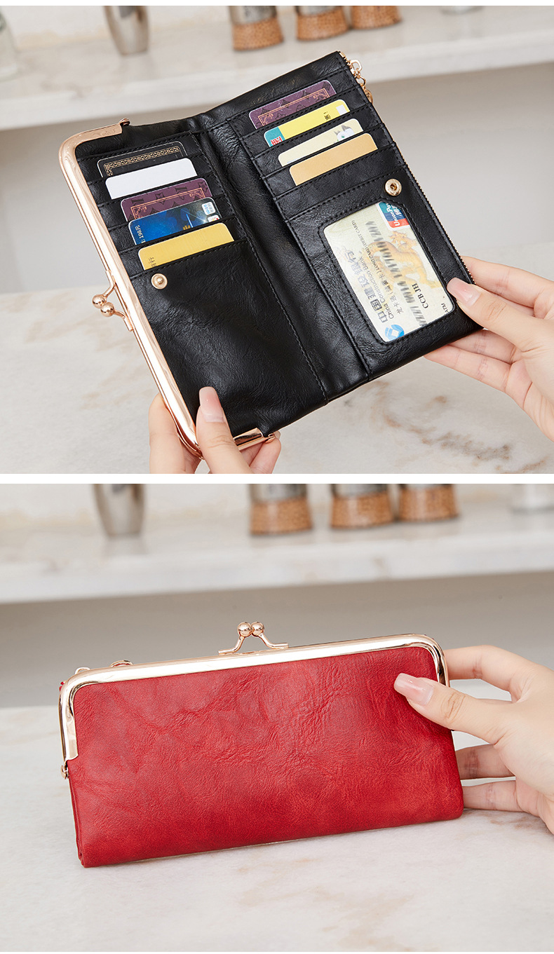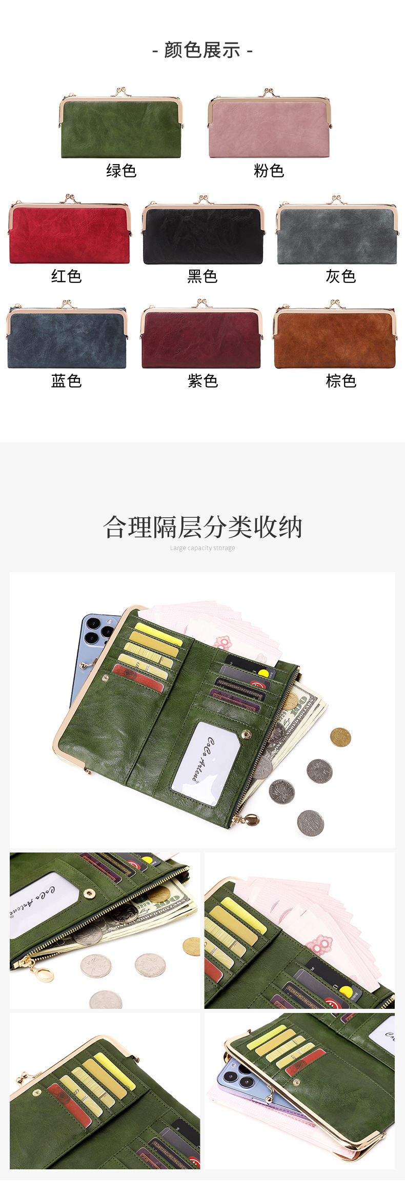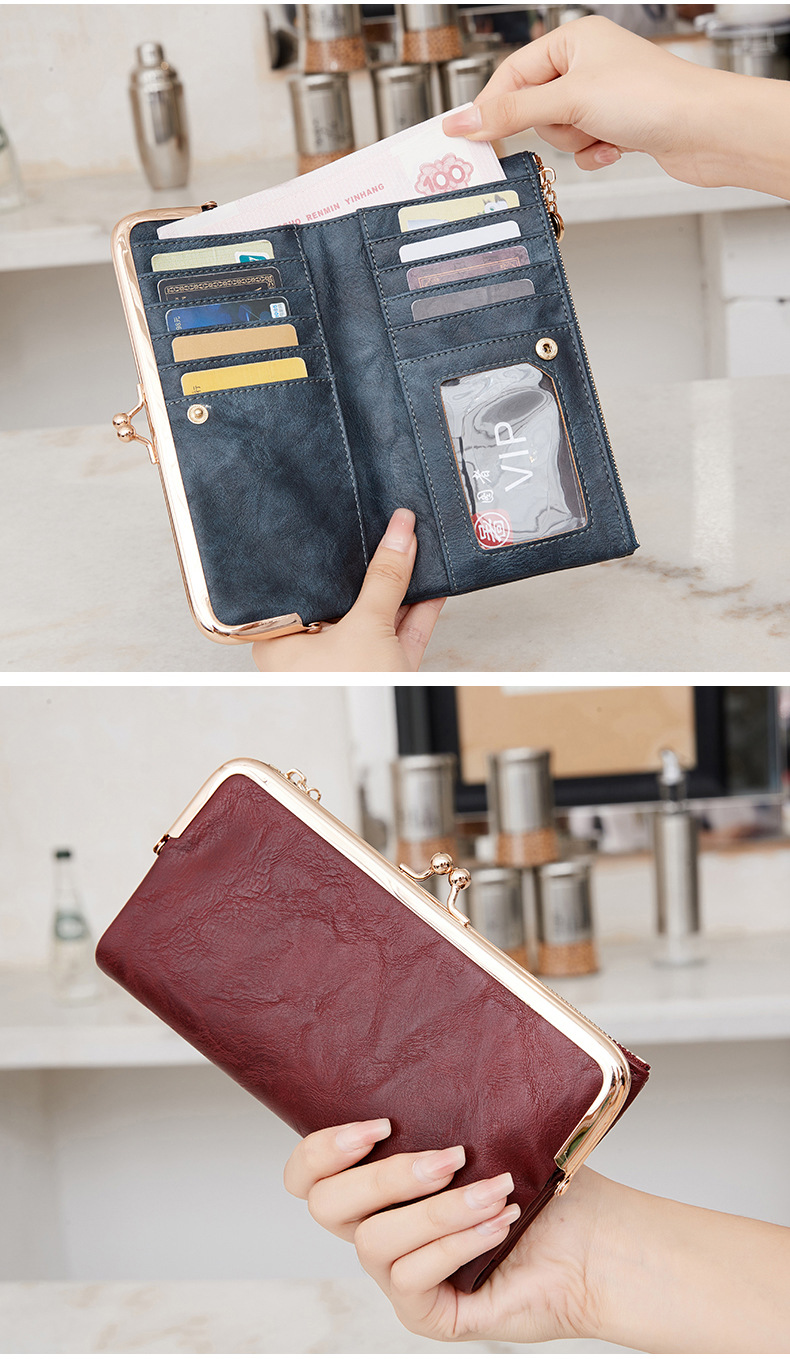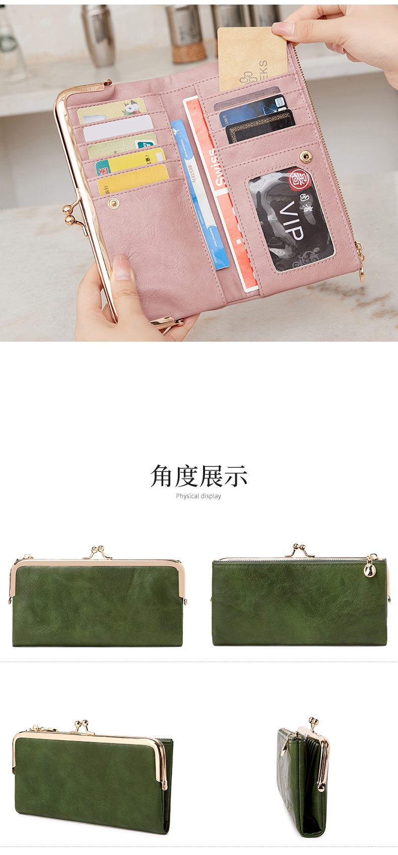레트로 다기능 접이식 클립 긴 동전 지갑 2024 새로운 휴대용 올 매치 멀티 카드 여성용 휴대 전화 가방스토어 가기