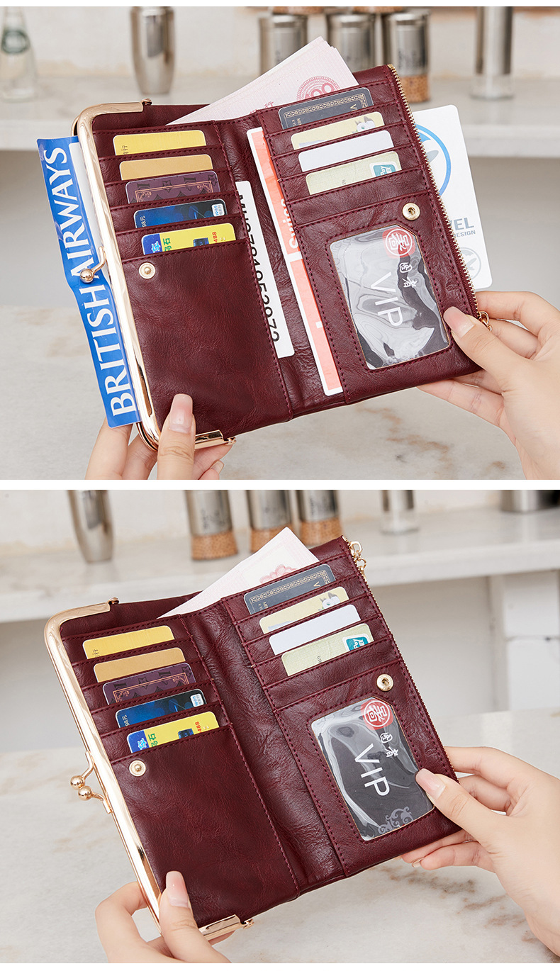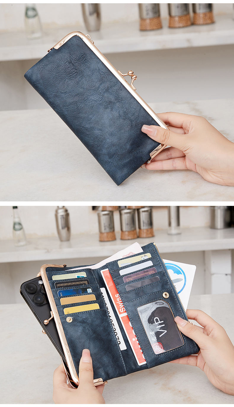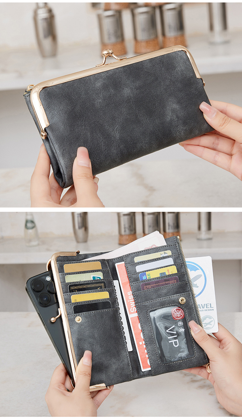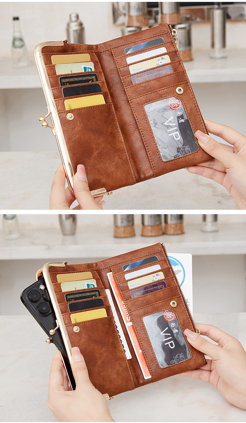 레트로 다기능 접이식 클립 긴 동전 지갑 2024 새로운 휴대용 올 매치 멀티 카드 여성용 휴대 전화 가방