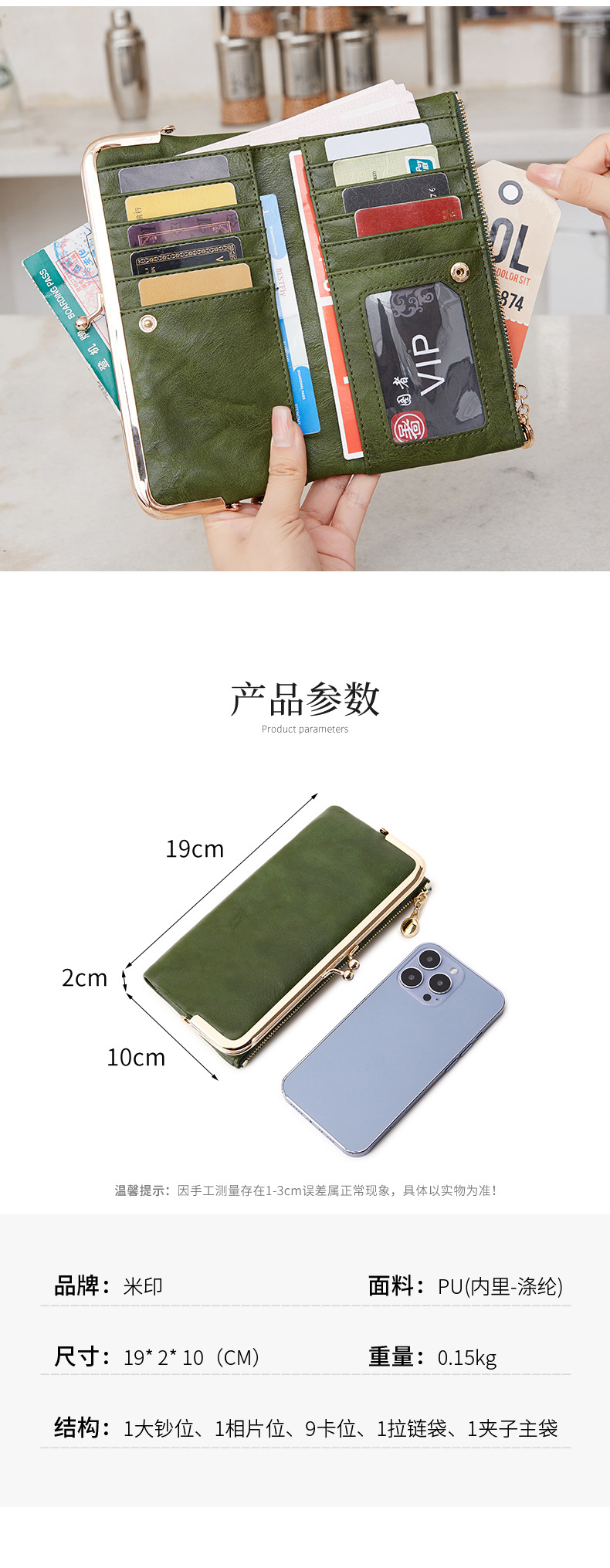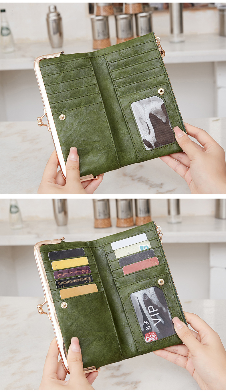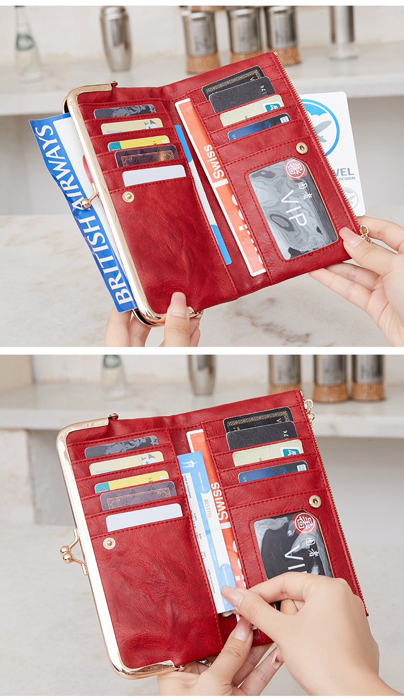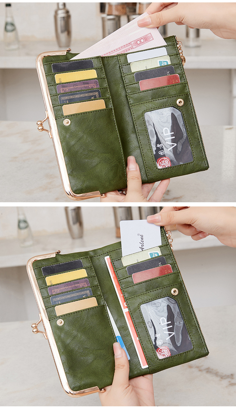 레트로 다기능 접이식 클립 긴 동전 지갑 2024 새로운 휴대용 올 매치 멀티 카드 여성용 휴대 전화 가방