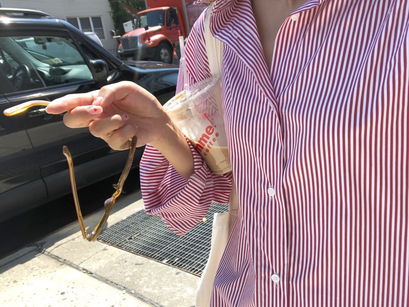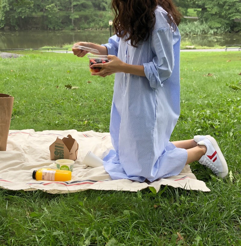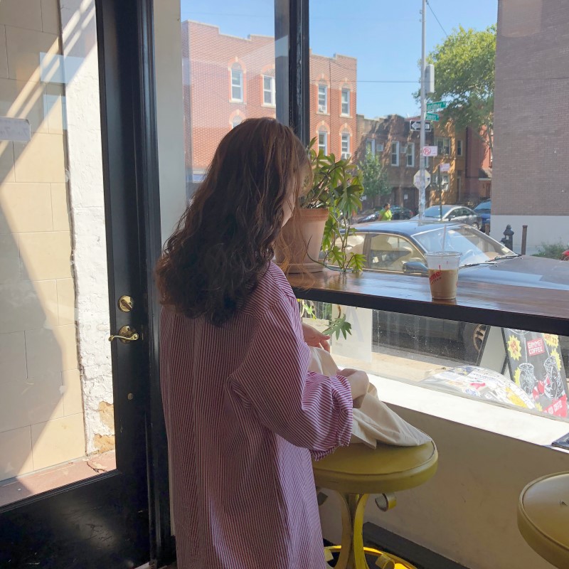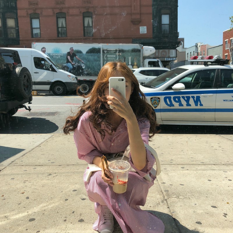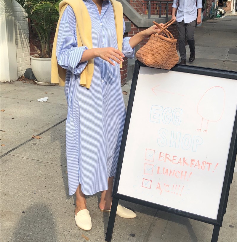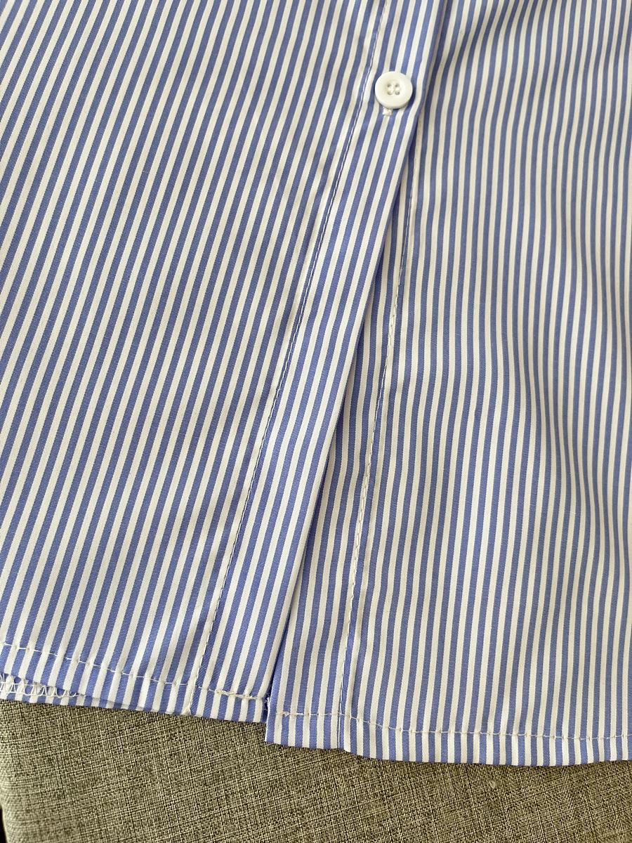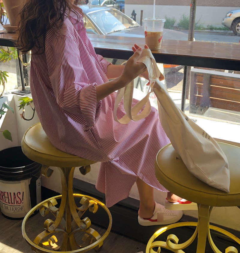 품질 봄과 가을 스트라이프 셔츠 원피스 여자의 긴 소매 디자인 감각 틈새 웨스턴 스타일 느슨한 슈퍼 긴 무릎 위 대형 에디션스토어 가기