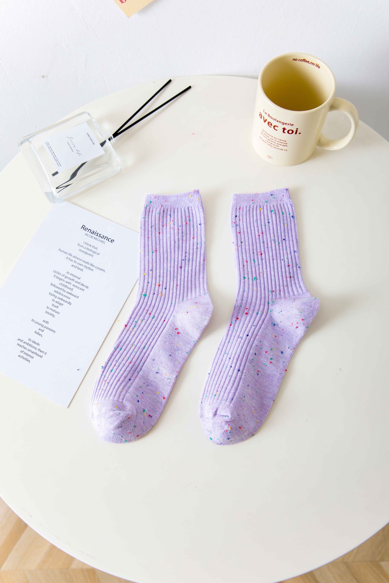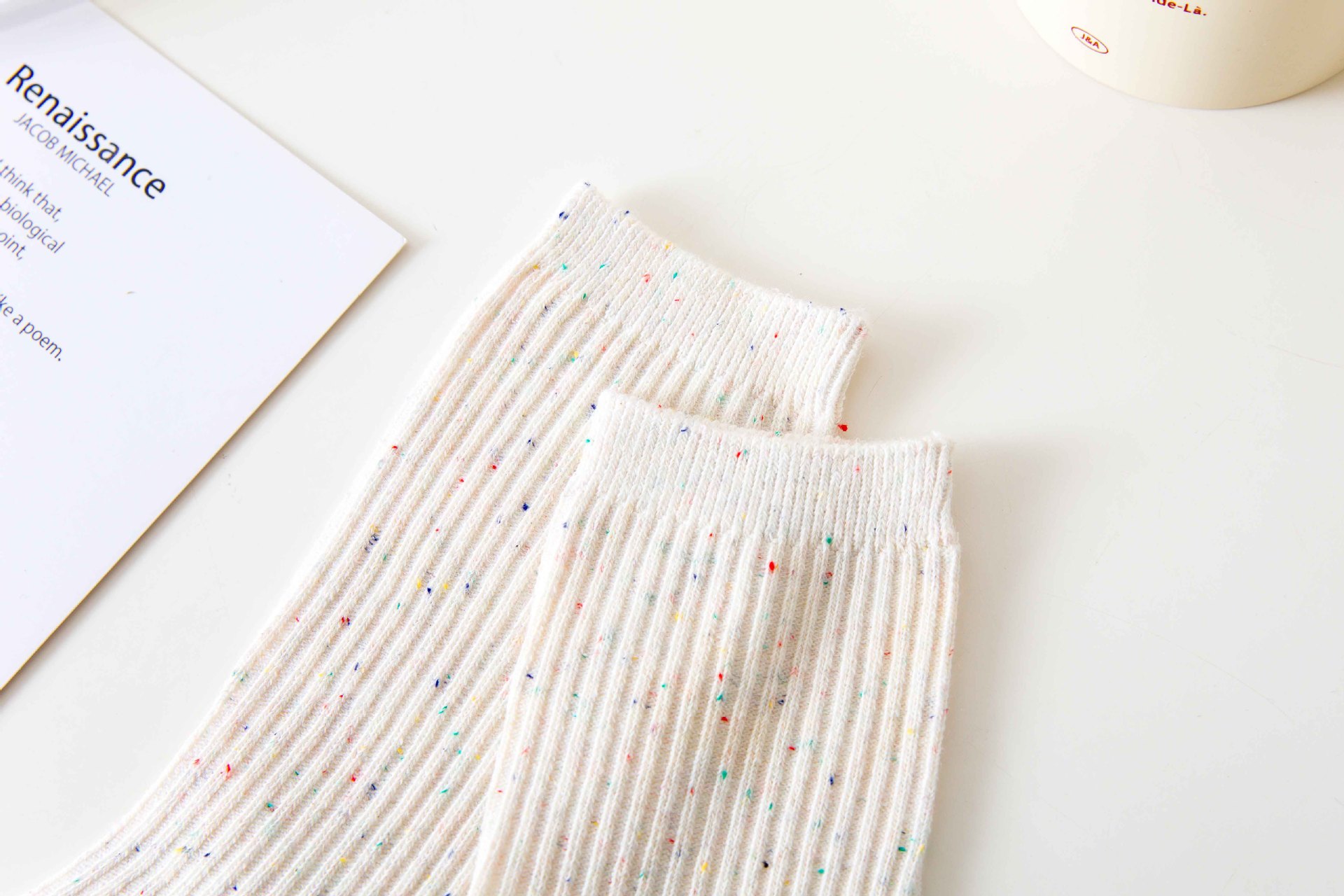 오트밀 컬러 성인 부드러운 밀랍 양말 여성용 가을과 겨울 중간 길이 양말 포인트 원사 순면 느슨한 이중 바늘 쌓인 양말 달 양말