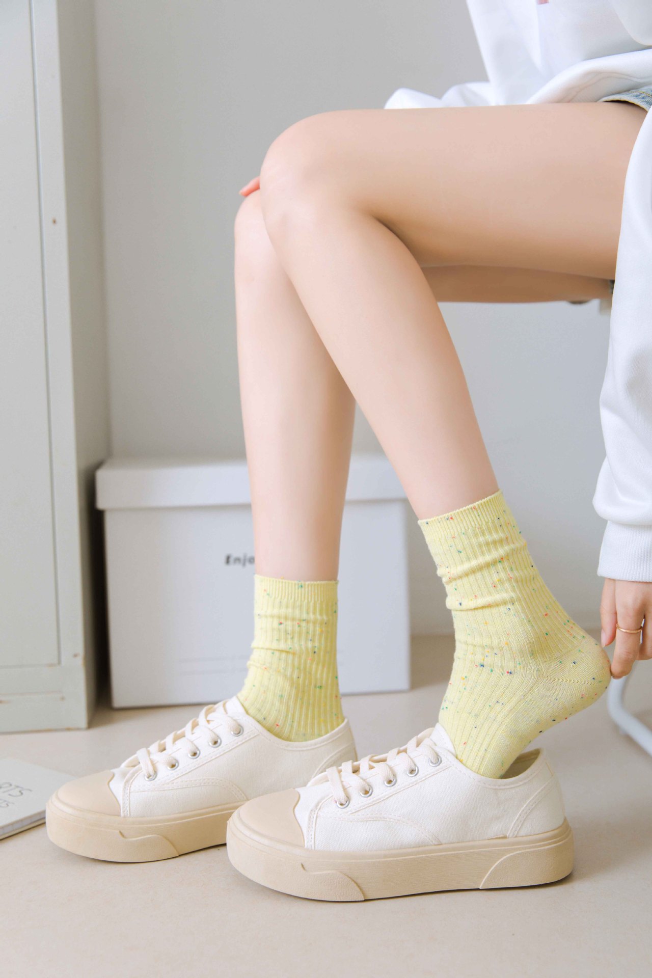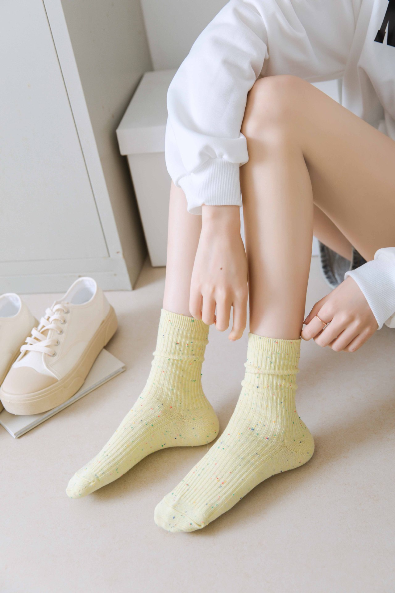 오트밀 컬러 성인 부드러운 밀랍 양말 여성용 가을과 겨울 중간 길이 양말 포인트 원사 순면 느슨한 이중 바늘 쌓인 양말 달 양말스토어 가기