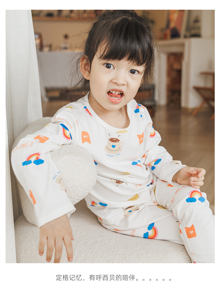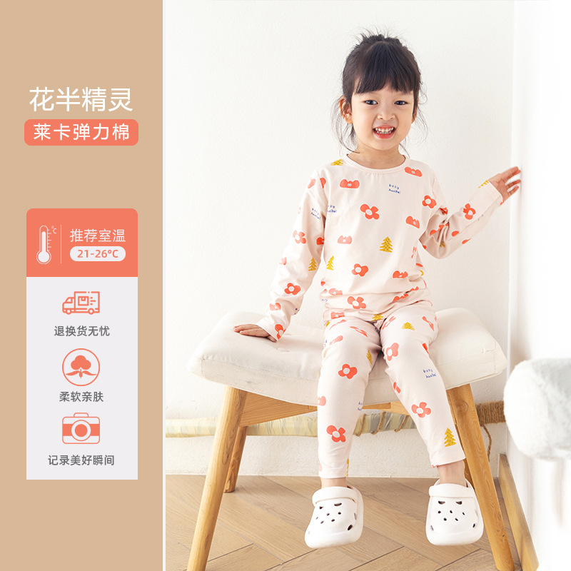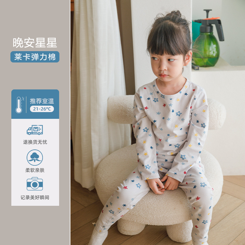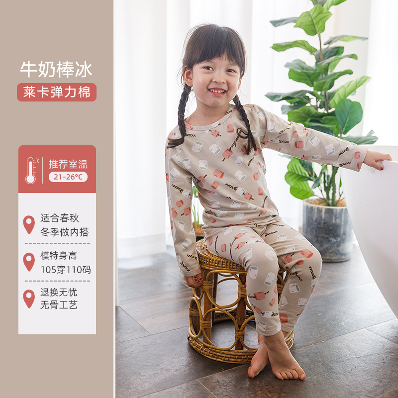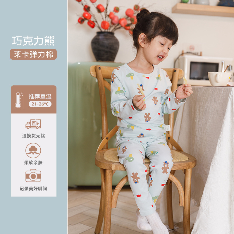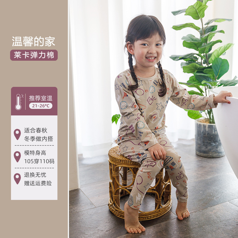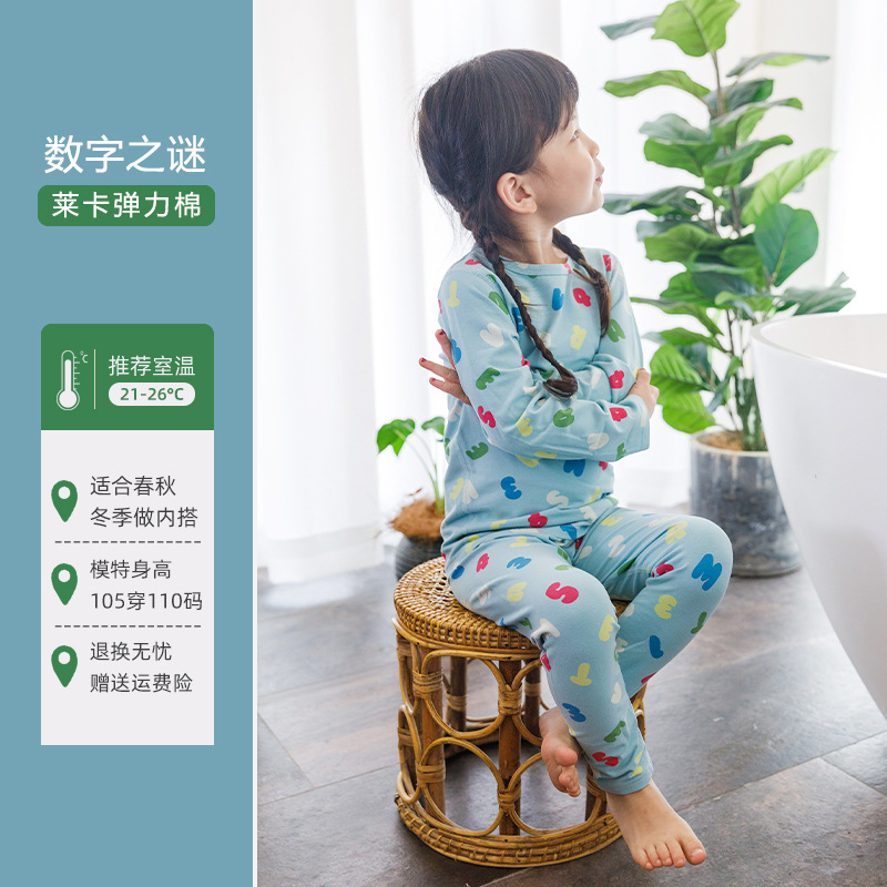 CUHK 아동 가정 의류 봄 가을 겨울 열 속옷 라이크라 세트 긴 소매 가을 바지 2 개 세트스토어 가기