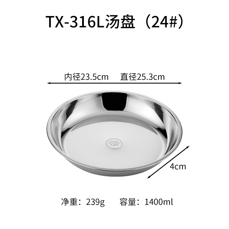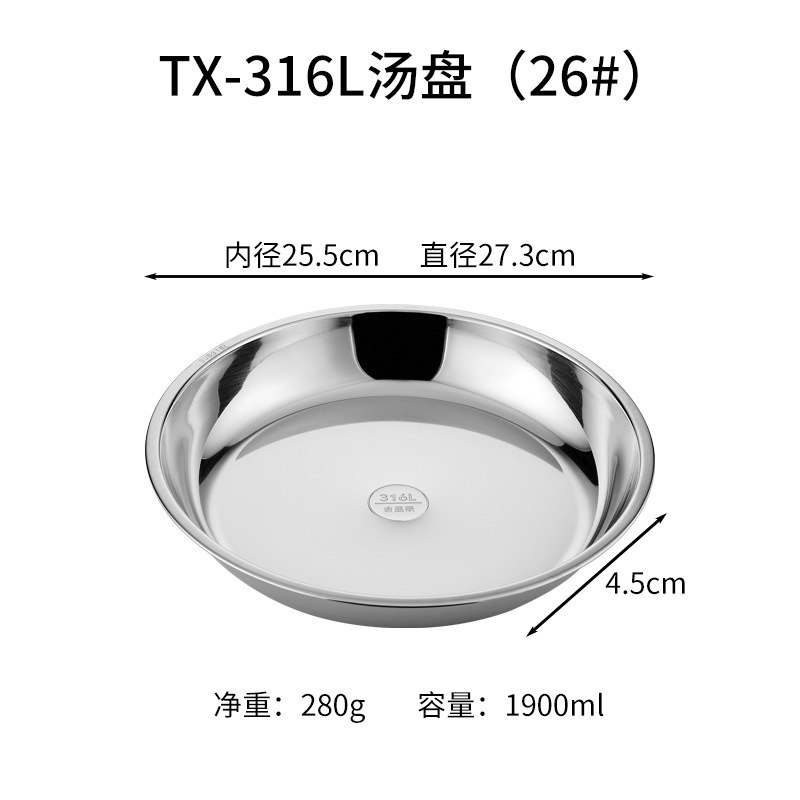 316 스테인레스 스틸 원형 접시 여분의 두꺼운 접시 디너 접시 스테인레스 스틸 접시 바베큐 접시 가정용 접시 접시 과일 접시 트레이