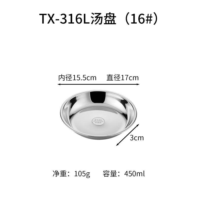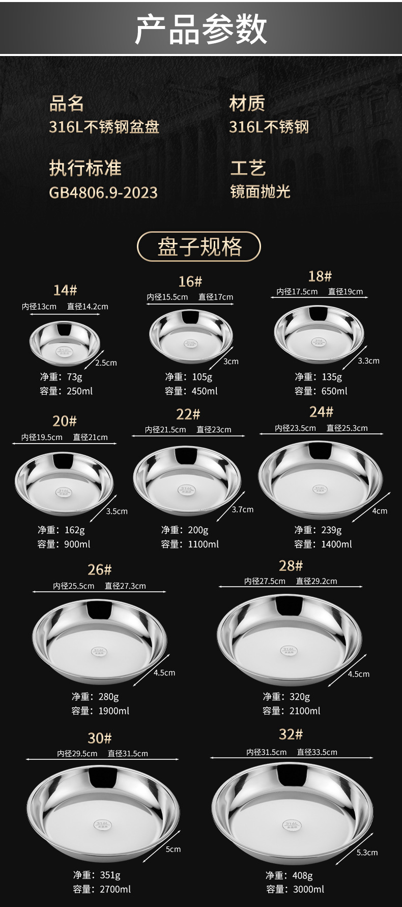 316 스테인레스 스틸 원형 접시 여분의 두꺼운 접시 디너 접시 스테인레스 스틸 접시 바베큐 접시 가정용 접시 접시 과일 접시 트레이스토어 가기