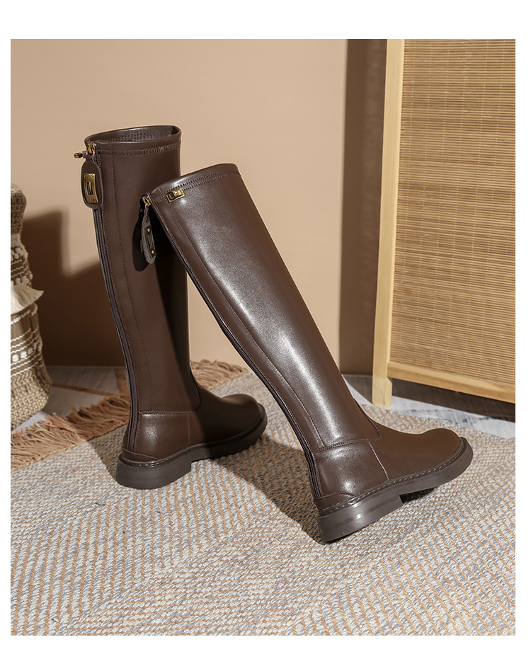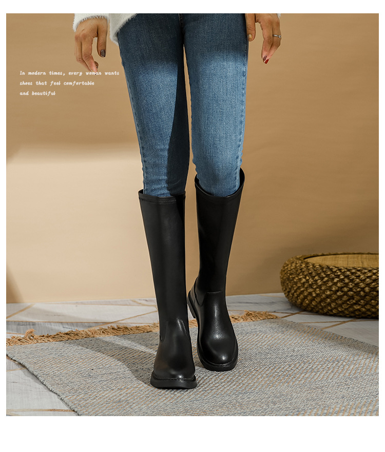 부츠 벨트 버클 2023 가을 높은 부츠 기모 통통녀 확장 기사 부츠 크기 여성 부츠 41-43